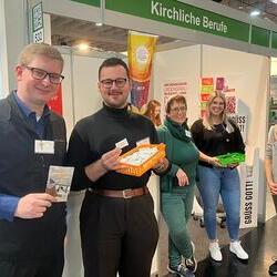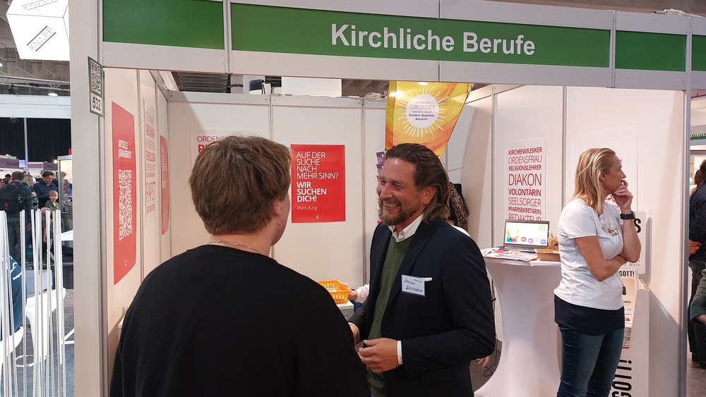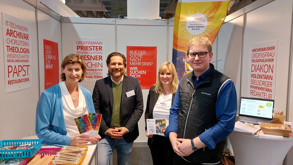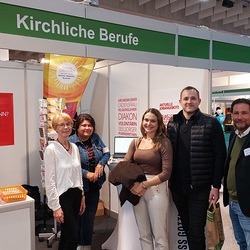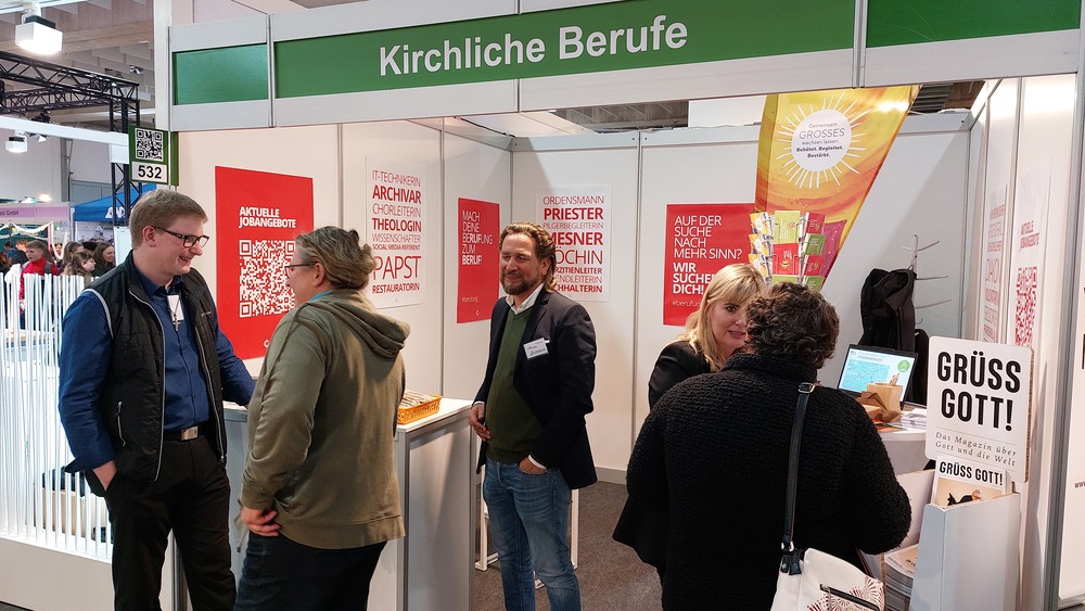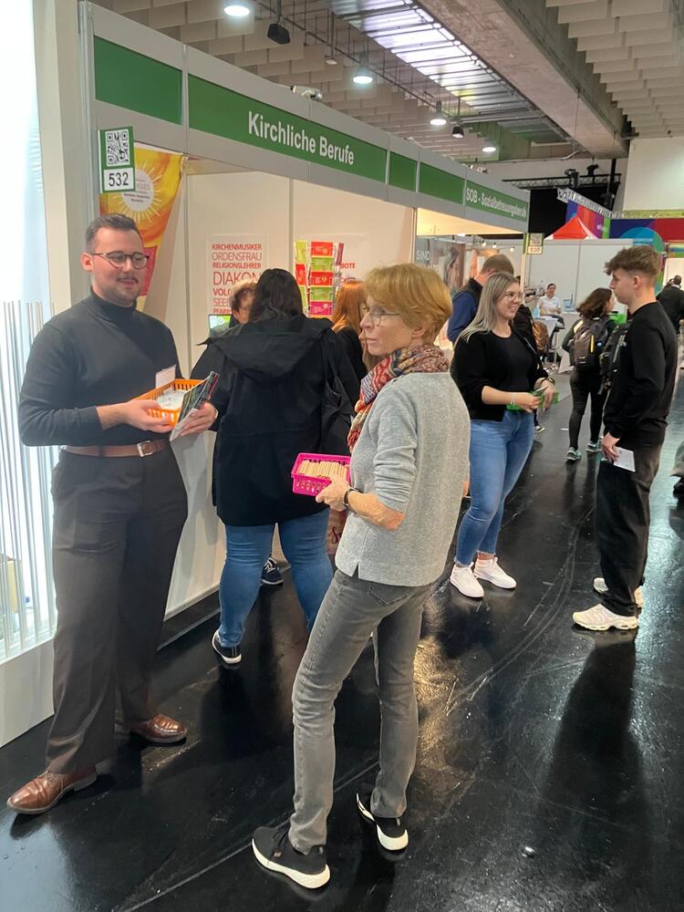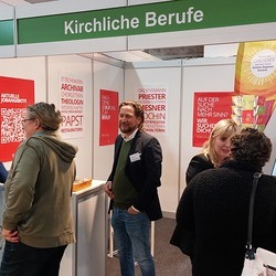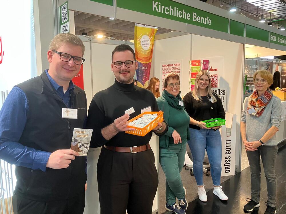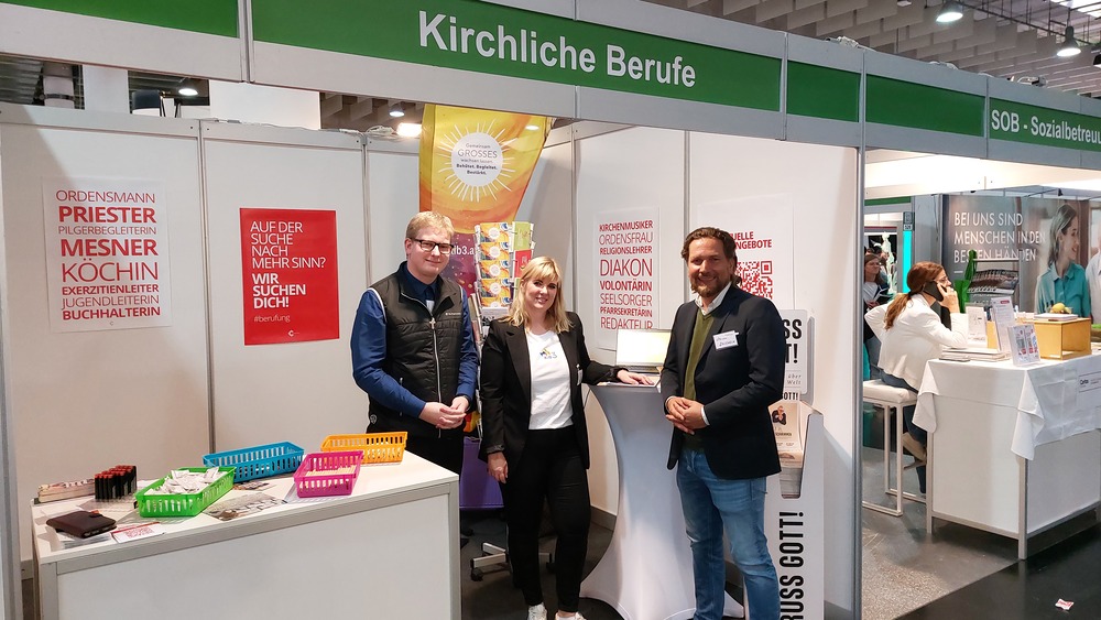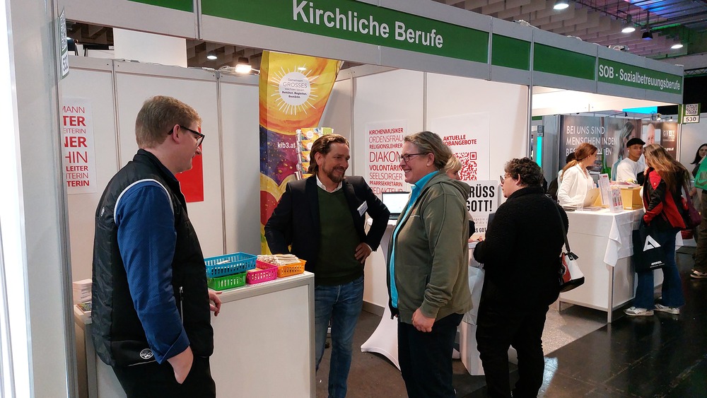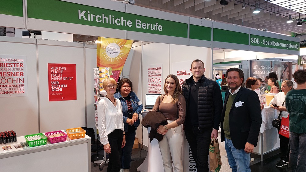Als eine der größten Arbeitergeberinnen der Steiermark ist es der Diözese Graz-Seckau wichtig, über die vielfältigen Möglichkeiten, in der Kirche beruflich tätig zu sein, zu informieren. Weihbischof Johannes Freitag und Vertreter:innen des Priesterseminars Graz-Seckau & Gurk, des KiB3 - Kinder in Bildungs- und Betreuungseinrichtungen, des Canisiuswerks, der Personalentwicklung und der Berufungspastoral der Diözese Graz-Seckau sind mit Jugendlichen, Lehrer:innen, Eltern und Interessierten über Berufe mit Sinn, konkrete Ausbildungs- und Tätigkeitsfelder und Fragen nach persönlichen Stärken und Interessen ins Gespräch gekommen. In den vielen Begegnungen konnte über das breite Spektrum an beruflichen Möglichkeiten in der Kirche informiert werden.