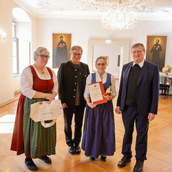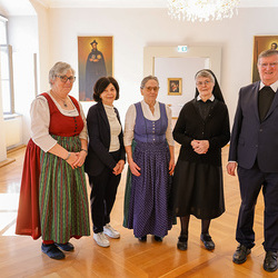 Kan. Franz Neumüller, geistlicher Assistent, ehrte gemeinsam mit Stefanie Fischer, Vorsitzende der Berufsgemeinschaft, vier Jubilarinnen für ihre 25- bzw. 50jährige Tätigkeit.