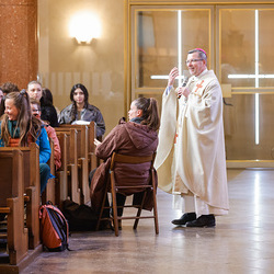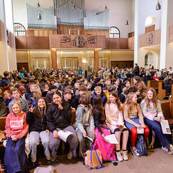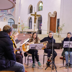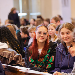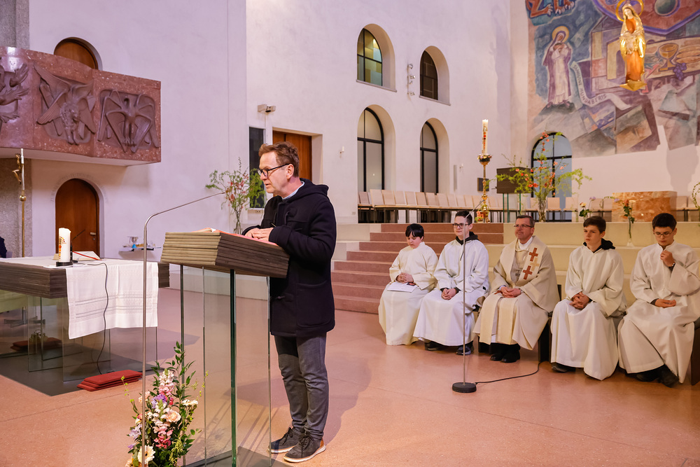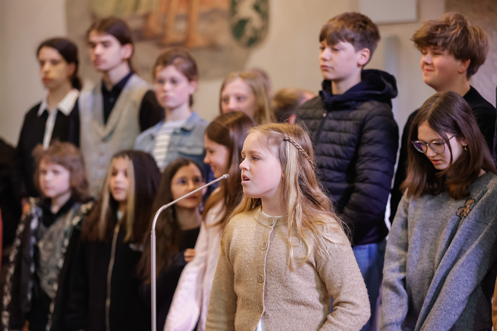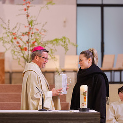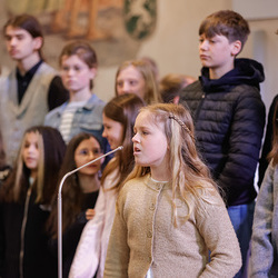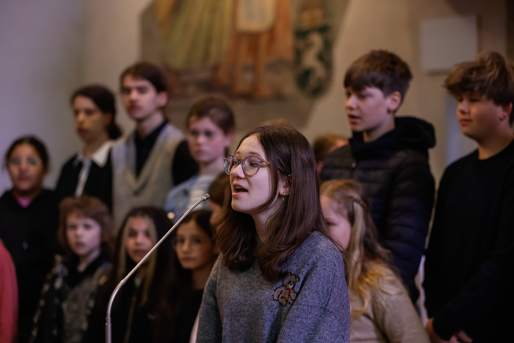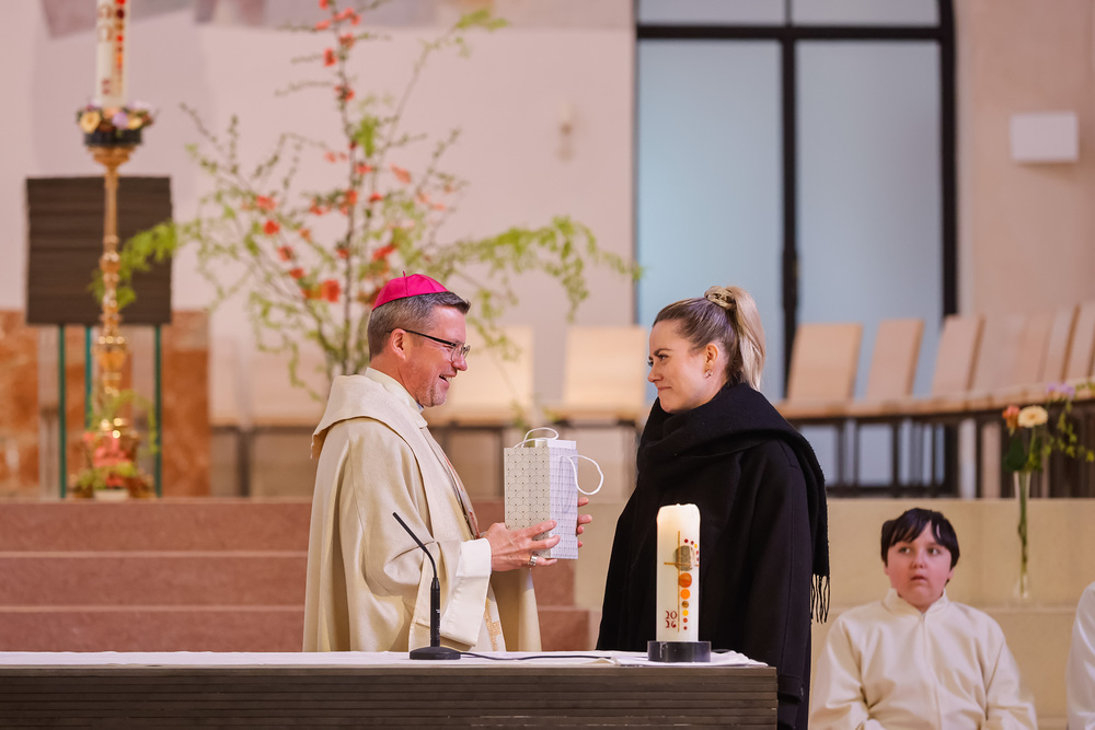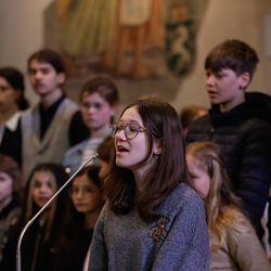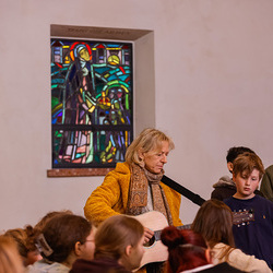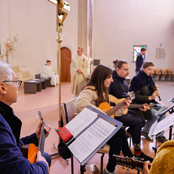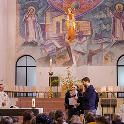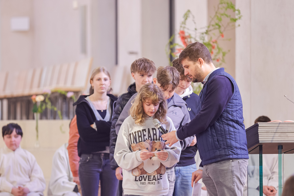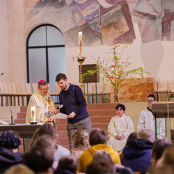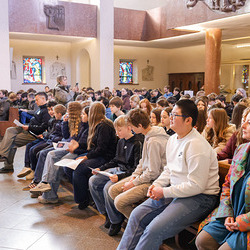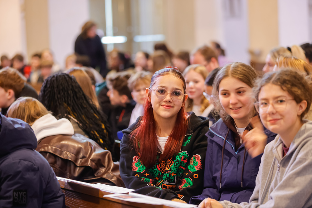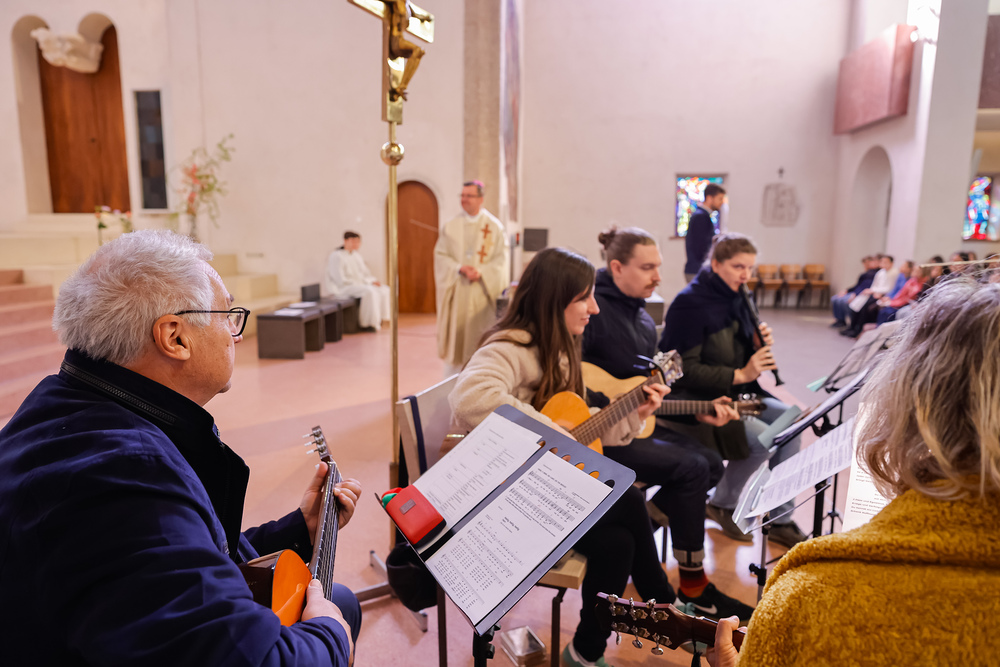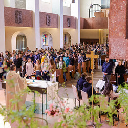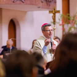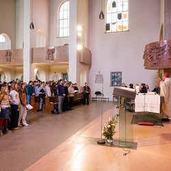 Weihbischof Johannes Freitag feierte mit der Schulgemeinschaft, darunter 400 Schülerinnen und Schüler der Mittelschule der Ursulinen. Unter dem Motto „brannte uns nicht das Herz?“ wurde noch einmal das Emmausevangelium verkündet. In seiner Predigt ging Weihbischof Johannes auf das „Gott fühlen“ ein. Der Gottesdienst wurde musikalisch von musizierenden Lehrer:innen und dem Schulchor begleitet.