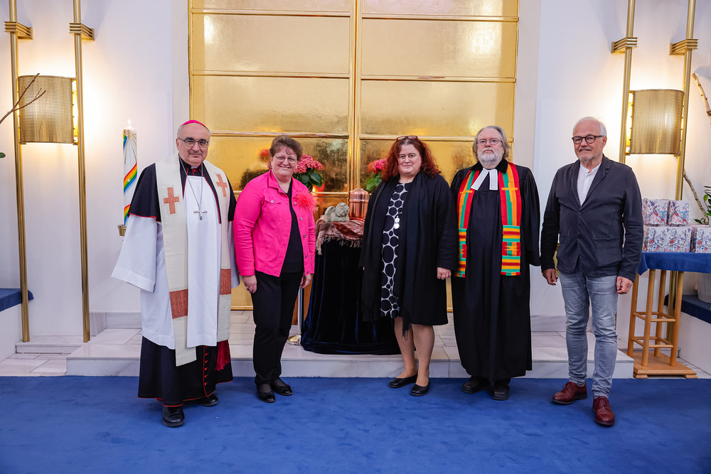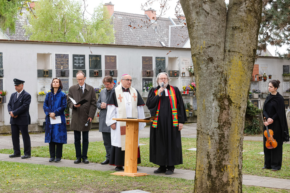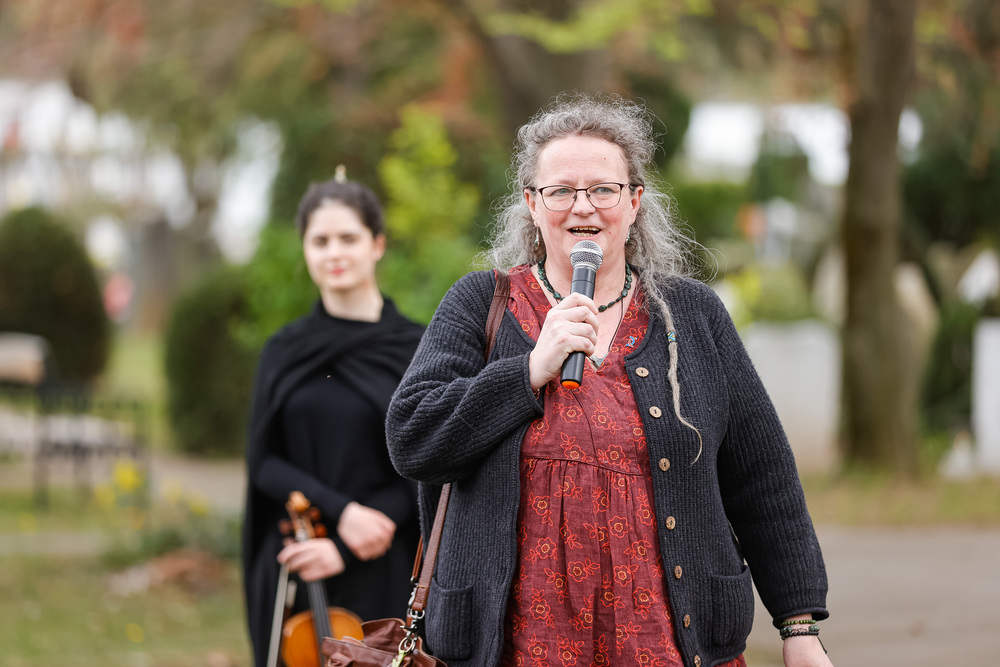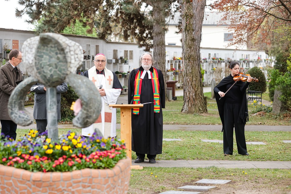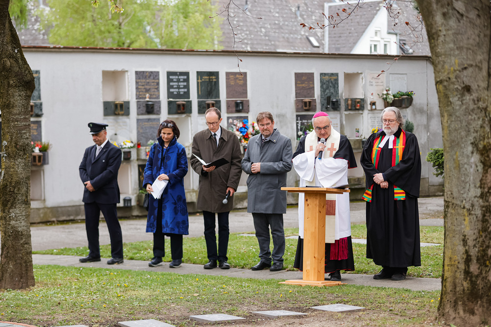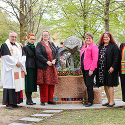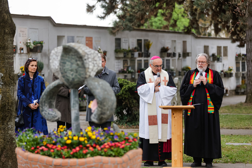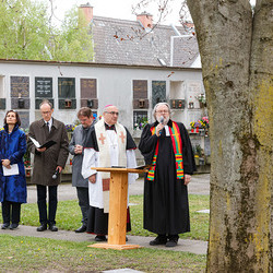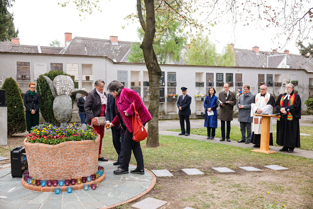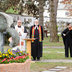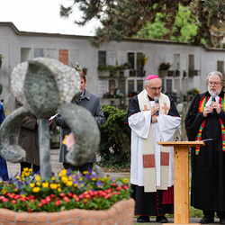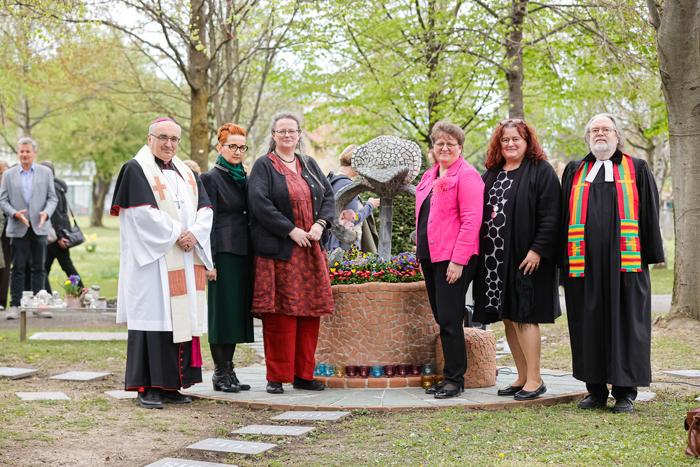 Selbst Betroffene und Begleitende, Menschen aus verschiedenen Kontexten, aus Landes- und Stadtregierung, Krankenhaus und Krankenhausseelsorge, Hospizverein, katholischer und evangelischer Kirche, Bestattung, waren auf Einladung der Plattform „Wenn Lebensanfang und Lebensende zusammenfallen“ zu dieser Stunde zusammengekommen, um zu danken, zu gedenken und zu erinnern sowie auf den unermesslichen Wert und die Bedeutung dieser Sammelbestattungen auch in Zukunft hinzuweisen.