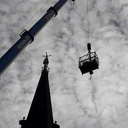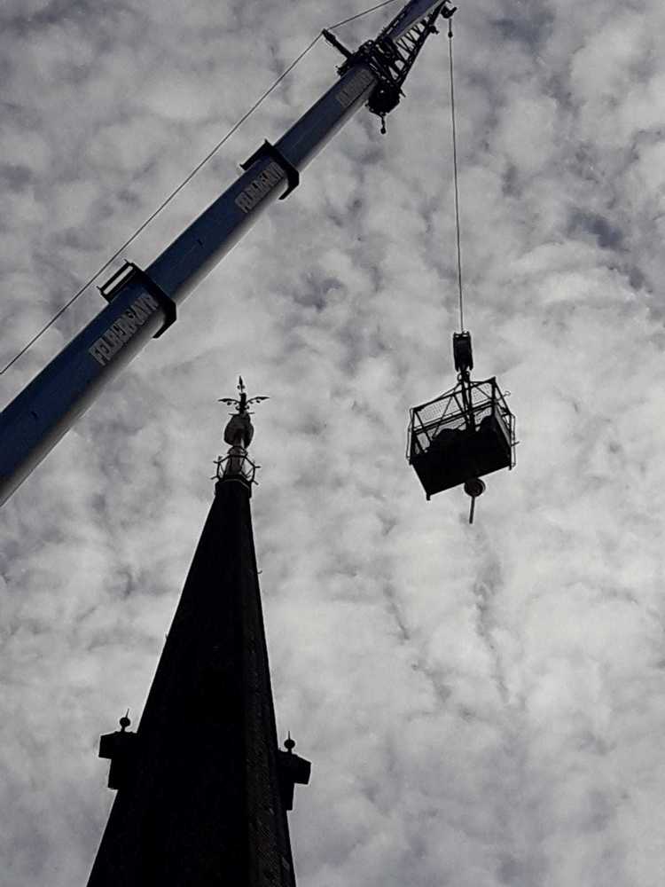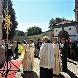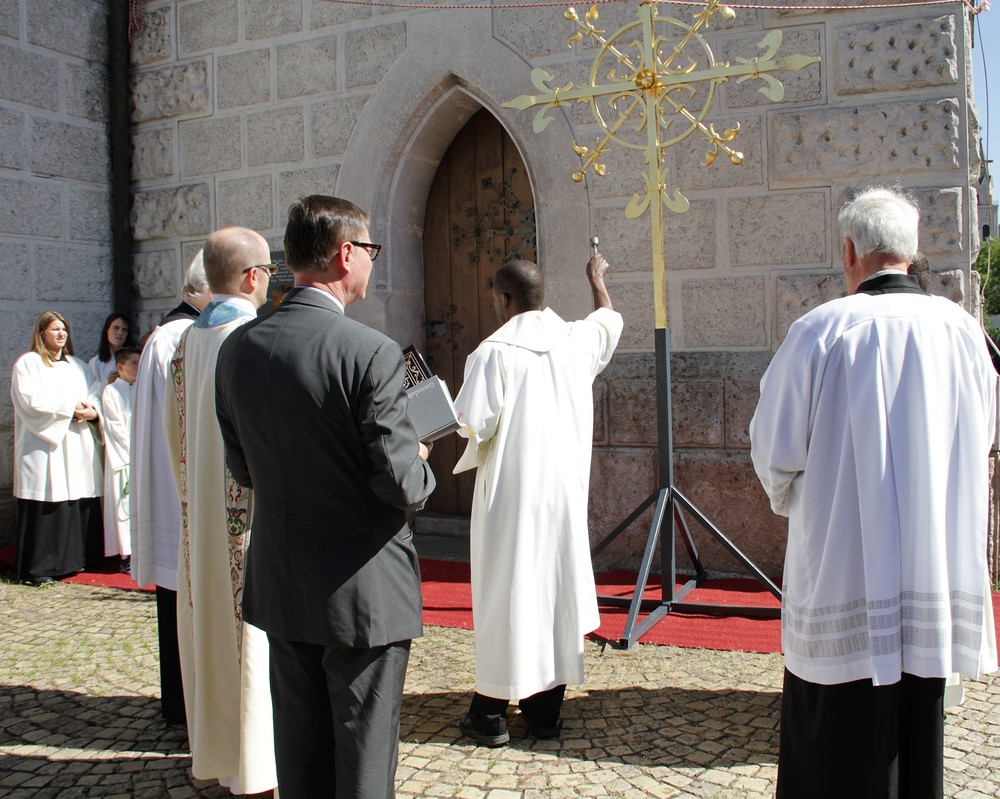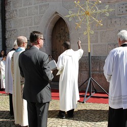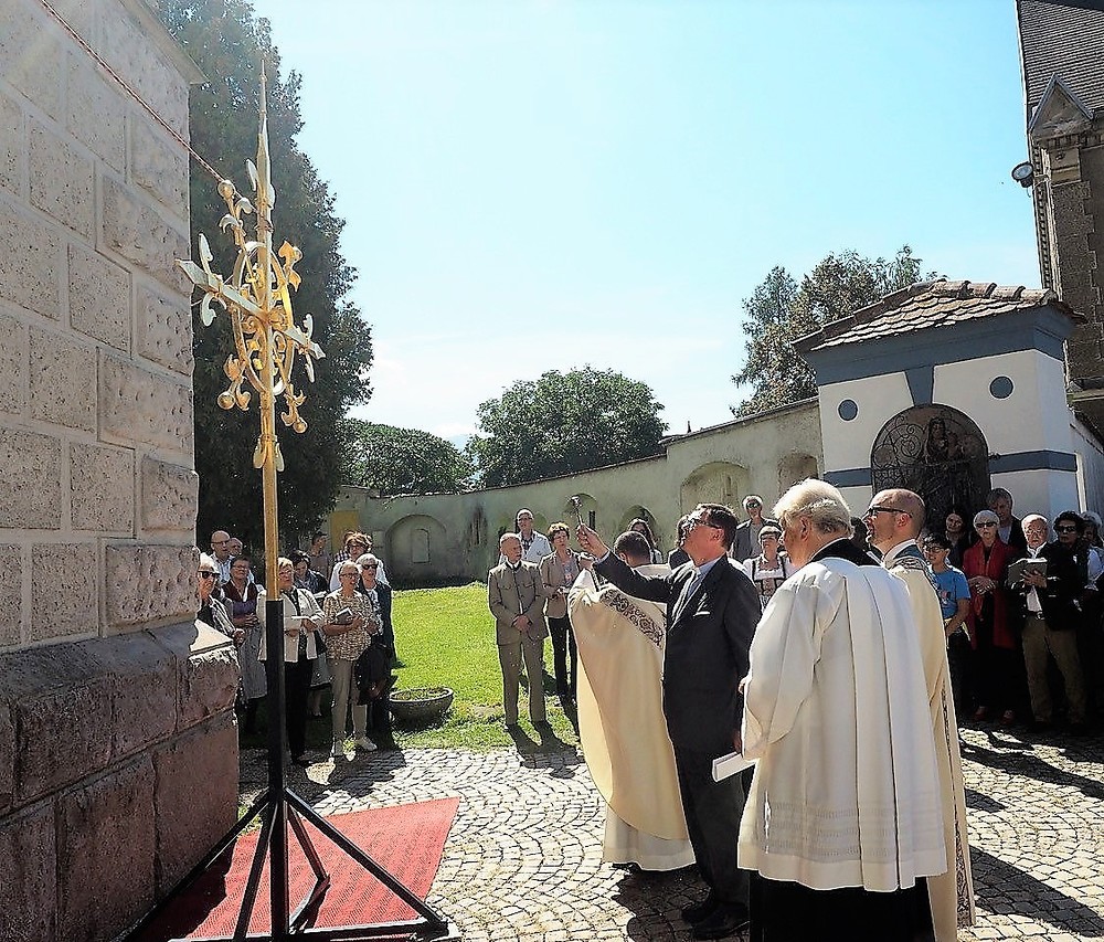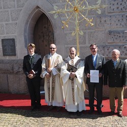 Nach einem Blitzschlag in den Kirchturm der Pfarre Leoben-Waasen in der Nacht vom 5. auf den 6. August 2017 musste das Turmkreuz des höchsten Gebäudes der Stadt umfassend renoviert werden. Die Reparaturarbeiten samt Vergoldung des Turmkreuzes wurden im Auftrag des Wirtschaftsrates der Pfarre von der Firma Almer aus Pöllau durchgeführt und am 9. September 2018 war es endlich soweit: Der gebürtige Leobener, Pater Thomas Stellwag-Carion aus dem Benediktiner Stift Admont, durfte das prachtvolle Kreuz zusammen mit Stadtpfarrer Monsignore Markus Plöbst und Father Godfrey Bamuganyire weihen. Für den Festgottesdienst wurde dafür extra eine „Missa brevis“, bestehend aus Kyrie, Gloria, Sanctus, Benedictus und Agnus Dei von David Schlager komponiert und von der Singgemeinschaft Waasen uraufgeführt.