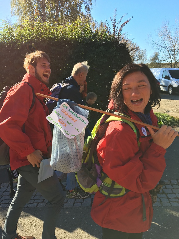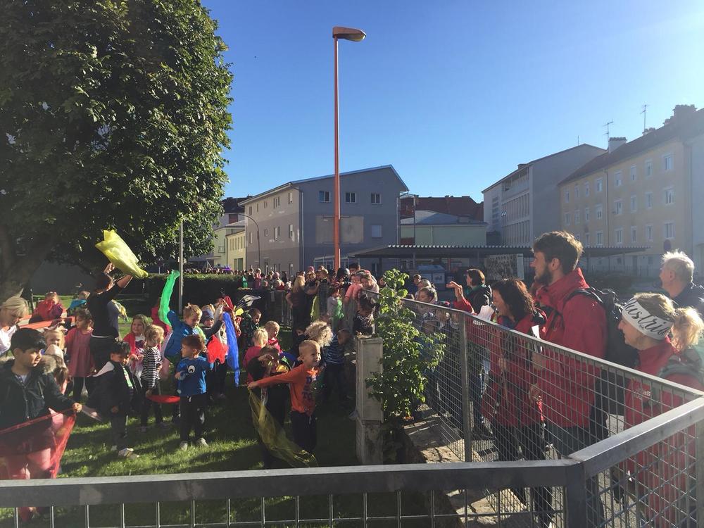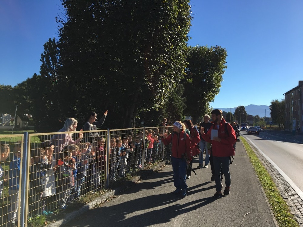 Auf dem Weg freuten sich alle über einen kurzen Plausch mit Bürgermeister Hermann Dullnig, vielen winkenden Gemeindebediensteten, den Kindergarten in der Schulgasse, der ein Jausensackerl vorbereitet hatte und den Kindergarten Farrach, der applaudierend am Zaun stand.