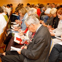 Das Motto der Tagung mit 170 TeilnehmerInnen lautete Hoffnung.Zuversicht.Vertrauen und bezog sich auf Anrufende wie auch auf die TelefonseelsorgerInnen selbst. Was gibt Vertrauen denen, die helfen und was lässt die Gesellschaft und jede/n einzelne/n hoffen und vertrauen, auch wenn die Lebenssituationen subjektiv es nicht zulassen?