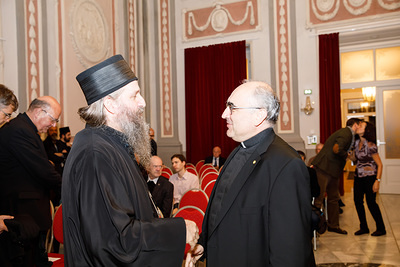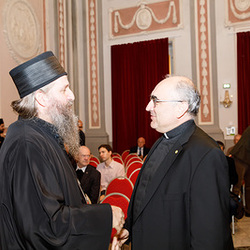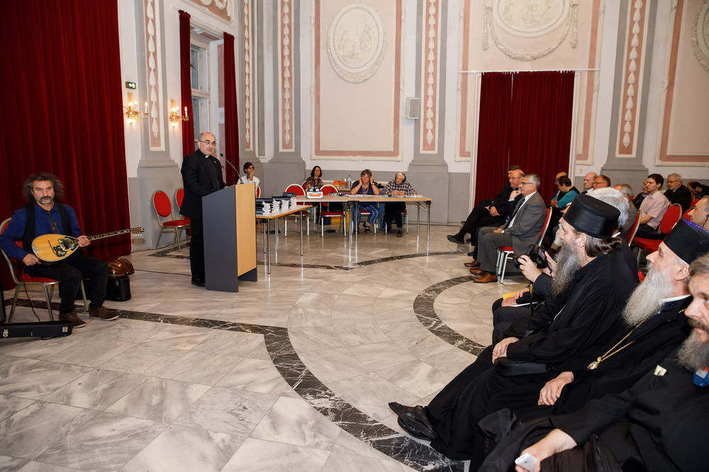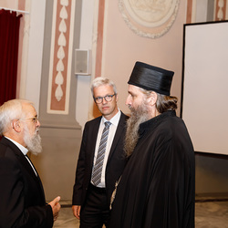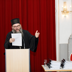 Im Mittelpunkt des Vortragsabends standen die aktuellen Entwicklungen der Beziehungen zwischen der Orthodoxen und der Katholischen Kirche sowie die Präsentation des neuen Dokumentes des St. Irenäus-Arbeitskreises „Im Dienst an der Gemeinschaft. Das Verhältnis von Primat und Synodalität neu denken“.