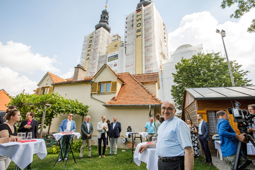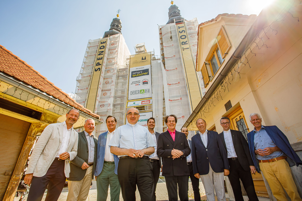 Die Renovierung der Basilika Mariatrost in Graz ist in vollem Gange. Ab Mitte August wird sie in einer neuen Farbe zu sehen sein.