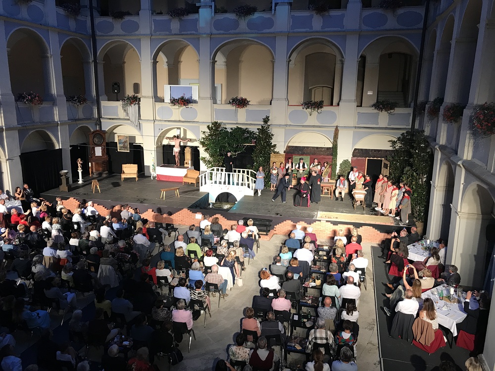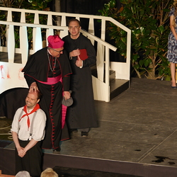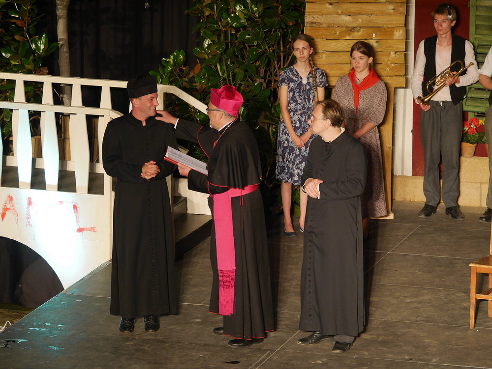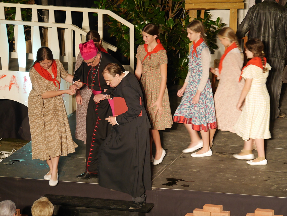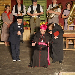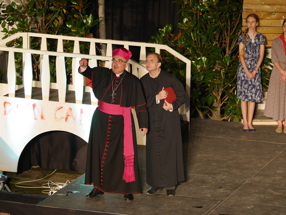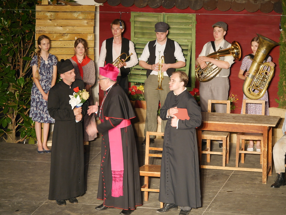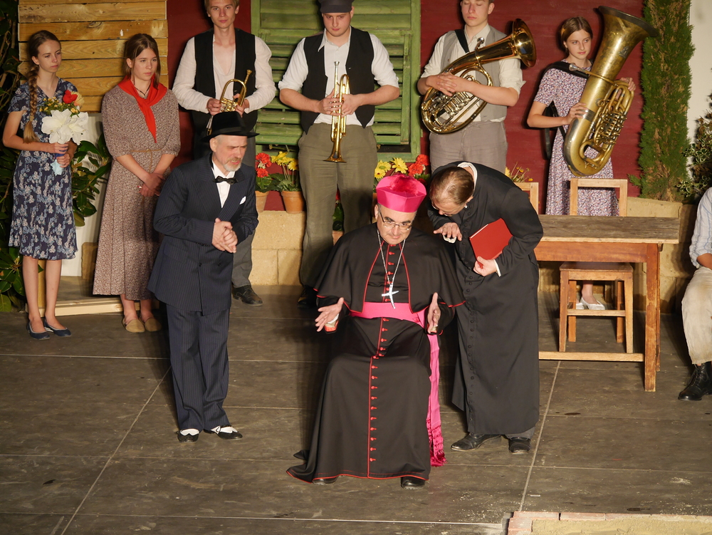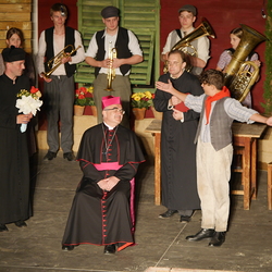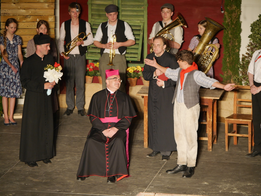 Bischof Krautwaschl spielte am Premierenabend in einer Theaterfassung des Romanklassikers "Don Camillo und Peppone" von Giovanni Guareschi einen italienischen Bischof, der mit seinem streitbaren Landpfarrer und Widersacher eines kommunistischen Bürgermeisters wenig Freude hat. Krautwaschl versuchte sich dabei als Streitschlichter zwischen Don Camillo und Peppone unter der Regie von Alfred Haidacher.