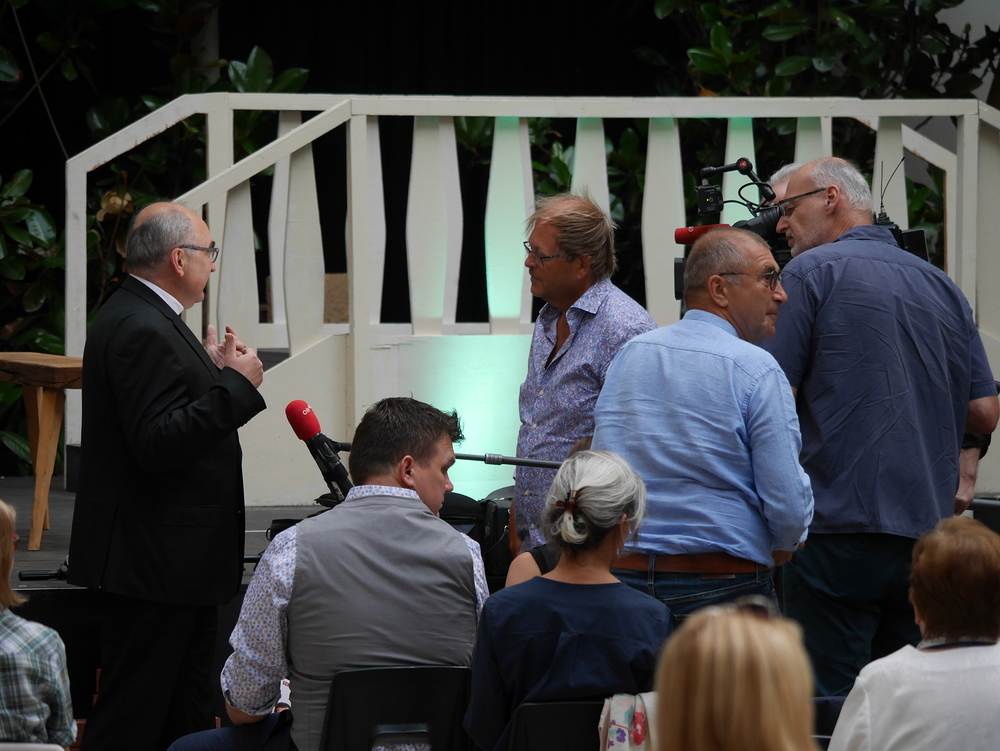 Nachdem die Schlossfestspiele immer wieder eine Benefizveranstaltung geben, sei es "von Anfang an klar gewesen", dass er die Anfrage des veranstaltenden Kulturvereins "Theater absolut" positiv beantwortet: "Für solche Initiativen, das passt einfach." Aufgeregt sei er vor seinem Gastauftritt "nicht sonderlich" gewesen, erzählte der Bischof: "Ich bin die eine Szene vor meinem geistig-mentalen Auge immer wieder durchgegangen." Weil aber der Bischof-Darsteller der weiteren Aufführungen immer in seiner Nähe gewesen sei, habe er die notwendige Sicherheit gehabt. Alles in allem sei es eine "ganz interessante und neue Erfahrung" gewesen, so sein Fazit.