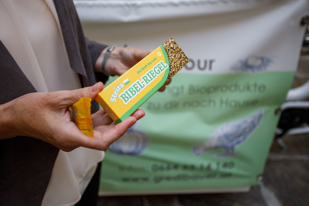 Speziell für die Bibel-Festwoche (24. September bis 3. Oktober 2021) wurde der Steira-Bibel-Riegel mit biologischen, steirischen Zutaten vom Gredlbauer (www.gredlbauer.at) mit dem Lastenrad angeliefert. Nachhaltig leben und arbeiten ist dem entsprechend auch das Motto der Eröffnungsveranstaltung der Bibel-Festwoche mit Bischof Wilhelm Krautwaschl am 25. September in der landwirtschaftlichen Fachschule Gottenhof bei Graz, „Im Anfang. Bibel in der Schöpfung hören. lesen. leben.“ Dort können die Steira-Bibel-Riegel auch verkostet werden. Informationen und Anmeldung: katholische-kirche-steiermark.at/bibeljahre oder 0316 8041 113.