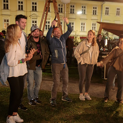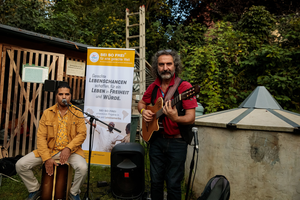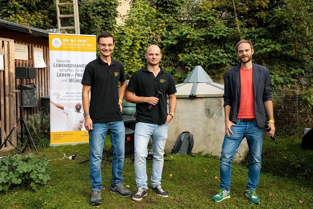 Organisiert von KHG, AAI, Sei So Frei & Trinkwasser für eine gerechte Welt, traten viele mitmachende und helfende Hände eine wahre kreative Welle los: Im zur Zinzendorfgasse hin offenen Garten mit Apfelbaum und gemütlicher Holzstiege gab es am Nachmittag köstliche Fastensuppe, erfrischende Zitronenlimo (ein Renner bei den kleineren Gästen), bewusstseinsfördernde Info- und Mitmachstationen rund ums Wasser, Henna-Tattoos, Musik von Juan Carlos „Agua“ J. Bursumian, feine Gespräche u.v.m. Durchaus handfest ging es auch beim „Wassertalk“ im Allmende-Garten hinter der Leechkirche zu, wo die Ingenieure ohne Grenzen über das erfolgreiche Projekt, das Modell einer Regenwasserzisterne von der Trockenzone Brasilien über Graz in den Nordwesten Tansanias zu transferieren, anschaulich berichteten, bevor kurz darauf bei einem vom Steirischen Volksliedwerk angeleiteten interkulturellen Musikstammtisch zünftig-zotige Jodelklänge erschallten. Den poppig-subtilen Deckel auf den Wassertopf gaben die zwei Bands banki moon und Viech: „mit dir möcht ich baden gehen …“ hallte es von der stimmungsvoll beleuchteten Leechkirche in die Nacht. Das sinnvolle Wasserwerk war da bereits längst vollbracht.