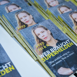 „Helden- und Superheldengeschichten gehören zu den wirkmächtigsten Fantasien der Menschheitsgeschichte“, so Hirns umgreifende These zu Beginn. Technologie, Marktwirtschaft und Massenmedien hätten jedoch die klassischen Helden ins Abseits gedrängt. An ihre Stelle seien die unverwundbaren, perfekten Superheld*innen getreten, die ständig die Welt retten, diese jedoch nicht verändern wollen. Vielmehr seien heute Vorbilder für mündige Bürger*innen nötig: Menschen mit Maß, die etwas auch dem simplen Grund tun, weil es für sie richtig ist – nicht, weil sie, Heldenfiguren ähnelnd, den Applaus brauchen.
