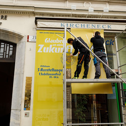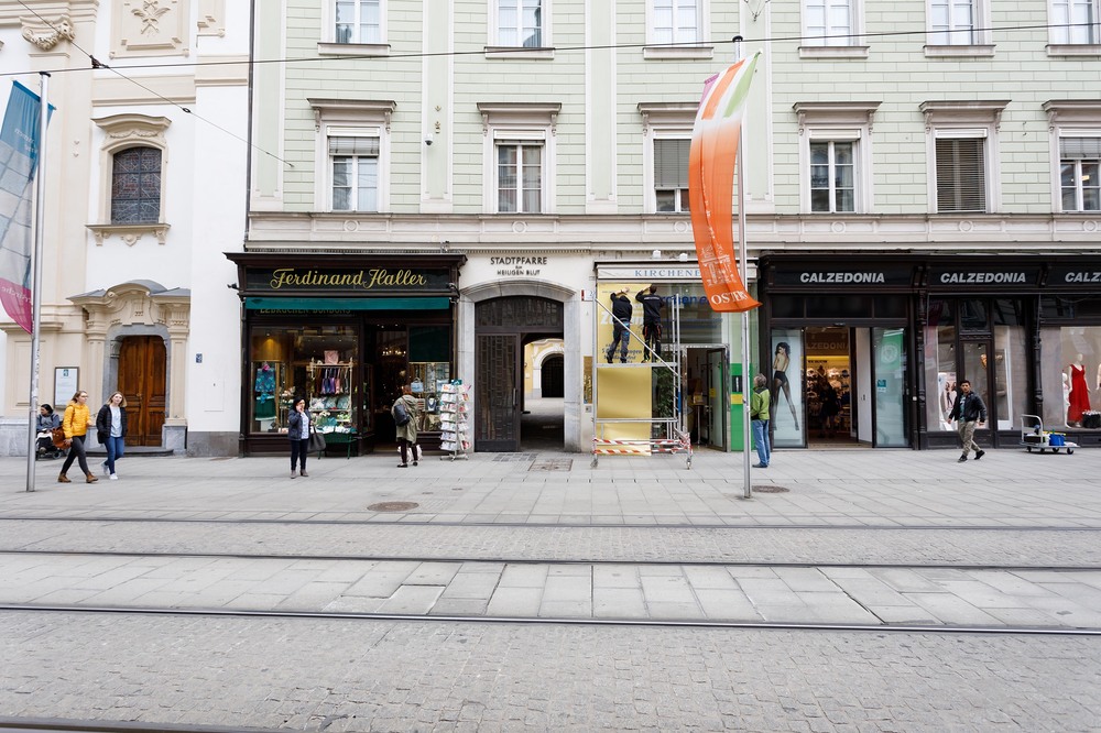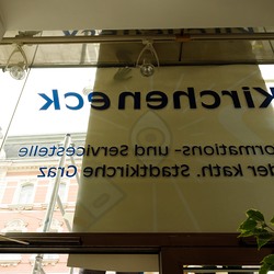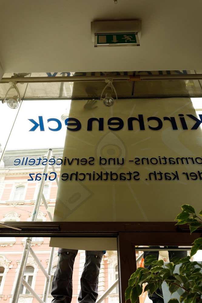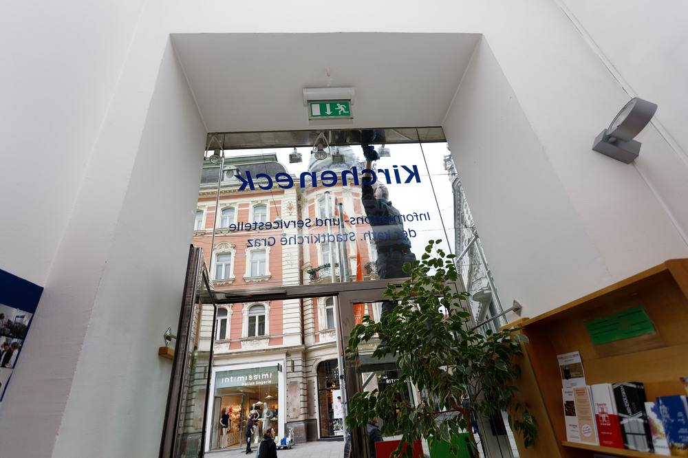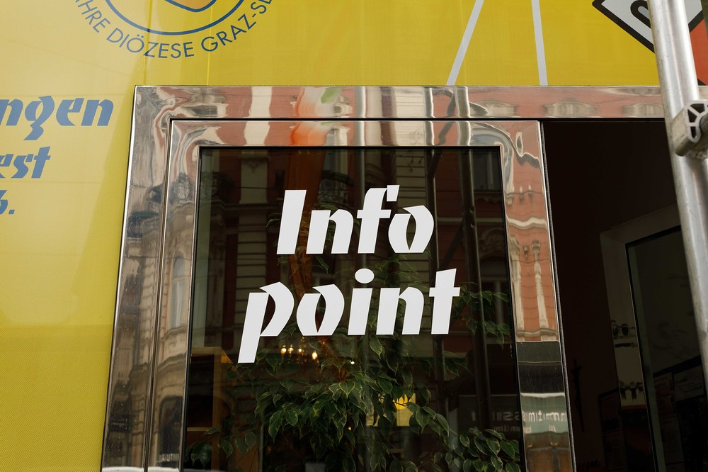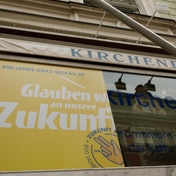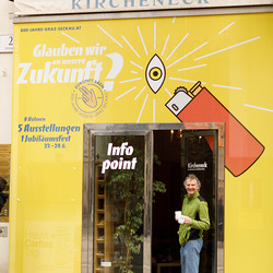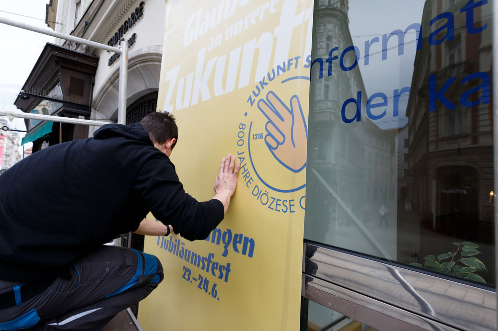 Das Kircheneck in der Herrengasse erstrahlt in neuem Glanz und ist nun weithin sichtbar der zentrale Infopoint für alles rund um das Diözesanjubiläum.