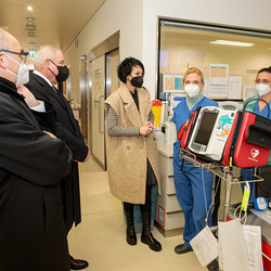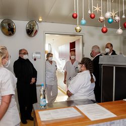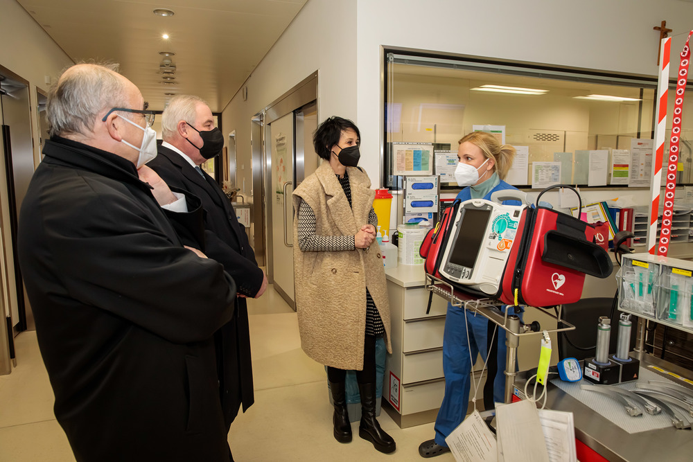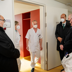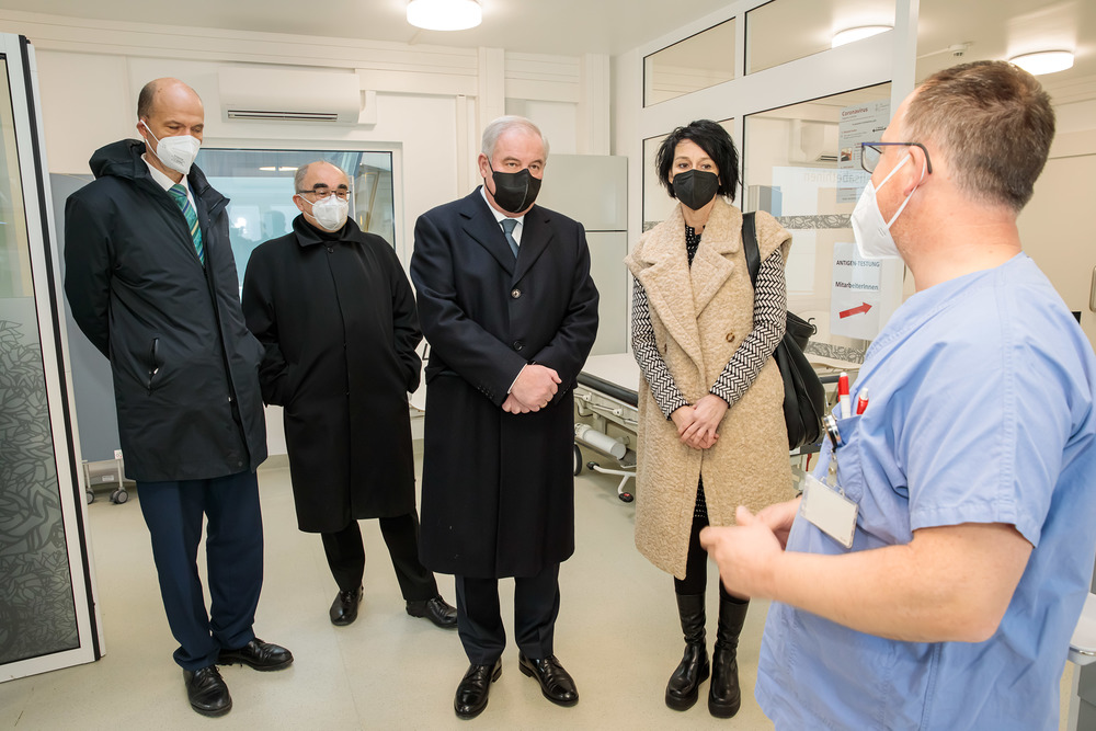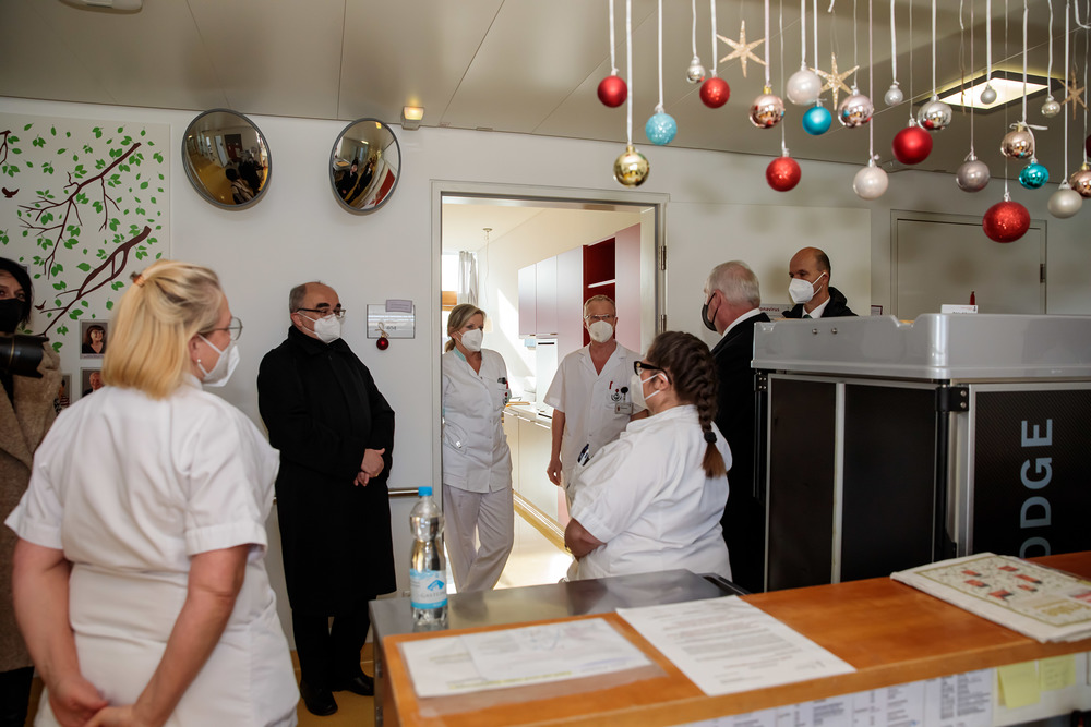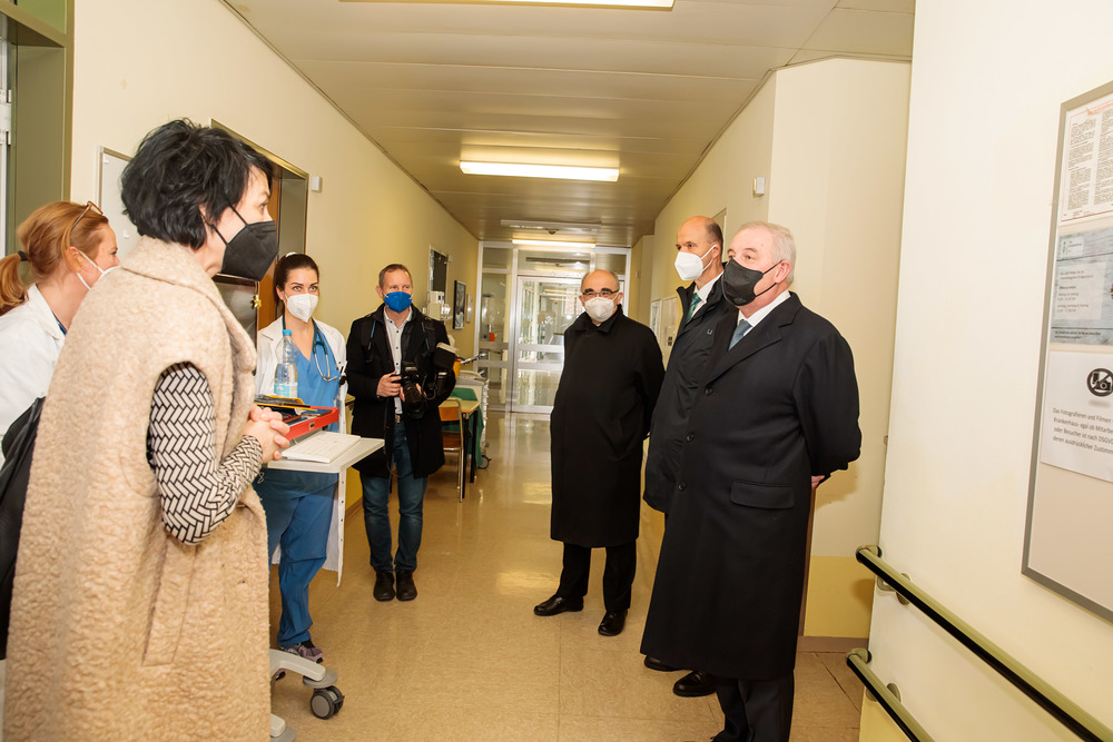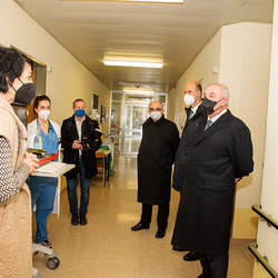 Nach dem Besuch des Krankenhauses wurde von Bischof und Landeshauptmann auch die Covid-Teststraße auf der Grazer Messe besucht.