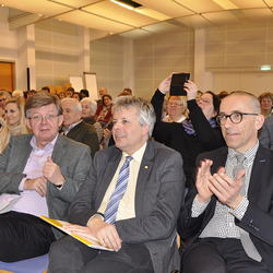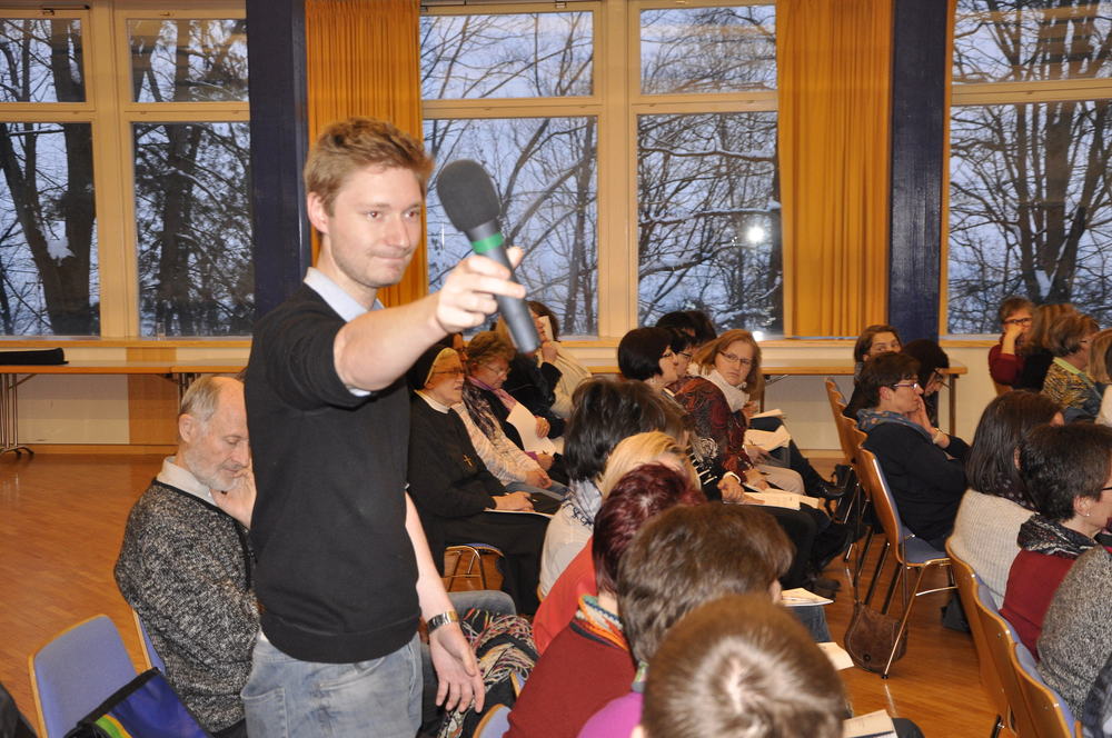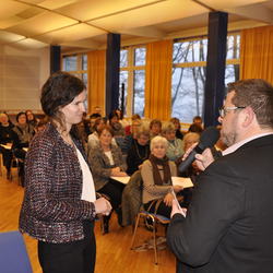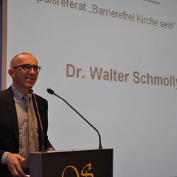 Dass dieser Einsatz für eine inklusive, für alle offene und mitgestaltbare Gesellschaft die Grundlage in der „barrierefreien Liebe Gottes“ hat, erläuterte Walter Schmolly, Direktor der Caritas Vorarlberg, in seinem Impuls. Diese bedingungslose Liebe Gottes zu uns Menschen konkretisiert sich auch im „mission statement“ der Kirche, das im Dokument Lumen gentium formuliert ist: „Die Kirche ist in Christus gleichsam das Sakrament, das heißt Zeichen und Werkzeug für die innigste Vereinigung mit Gott wie für die Einheit der ganzen Menschen“. Herausforderung hierbei ist unsere plurale Gesellschaft mit GewinnerInnen und VerliererInnen – eine Gesellschaft, die auch oft mit „Entsolidarisierung gegen Sündenböcke“ konfrontiert ist. Diese Sündenbockrolle kommt heutzutage oft Menschen zu, die durch Armut daran gehindert werden, „an den Möglichkeiten des Lebens und der Gesellschaft teilzuhaben“ und als „Leistungsverweigerer“ diffamiert werden. Basis für ein barrierefreies Miteinander bildet für Schmolly der Dialog, das heißt, sich „auf Augenhöhe“ miteinander auseinanderzusetzen.