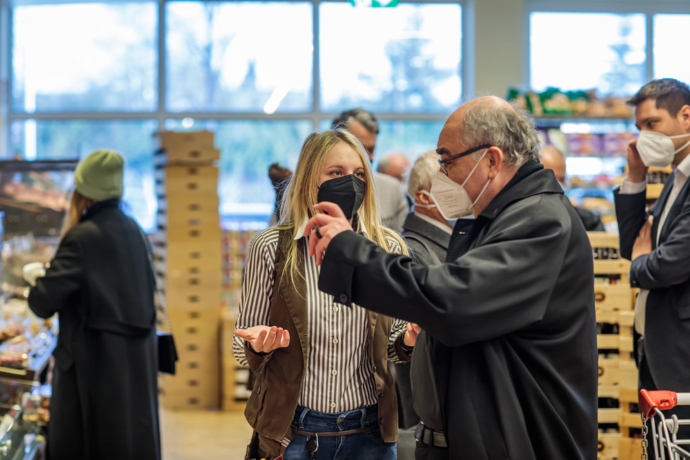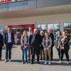 Beim Besuch einer SPAR-Filiale im Rahmen der Visitation des Seelsorgeraums Rein sprach Bischof Wilhelm Krautwaschl den Mitarbeitenden im Lebensmittelhandel Dank und Wertschätzung aus.
