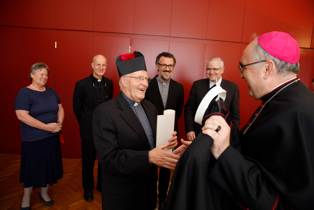 Bischof Wilhelm Krautwaschl verlieh Konsistorialrat Pfarrer Ferdinand Köck den Päpstlichen Ehrentitel „Monsignore“.