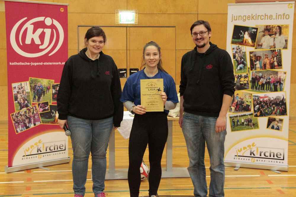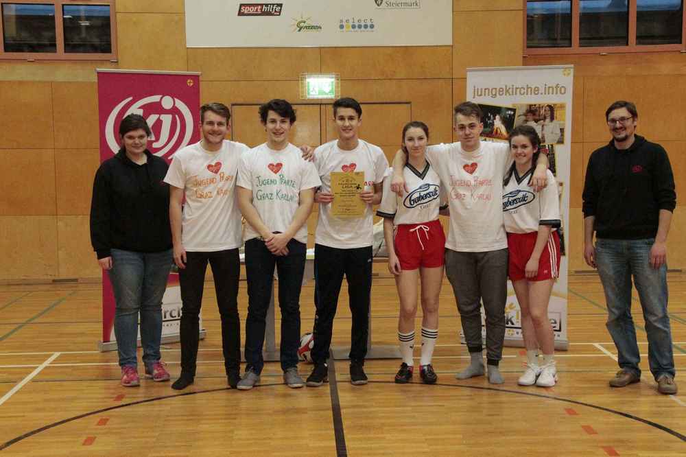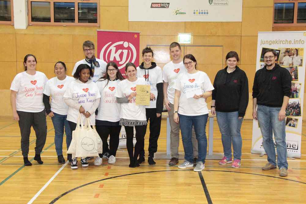 Der Tanz am Parkett ist vorbei! Wir gratulieren der Pfarre Graz St. Leonhard ("Die Kavaliere") zum 3. Platz! Platz 1 geht diesmal an zwei Teams! Herzlichen Glückwunsch der Pfarre Puch bei Weiz ("MenschIstDer United") und der Pfarre Weiz ("KJ Weiz") zum Sieg des heiß umkämpften Turniers!