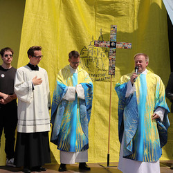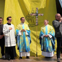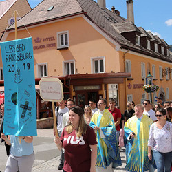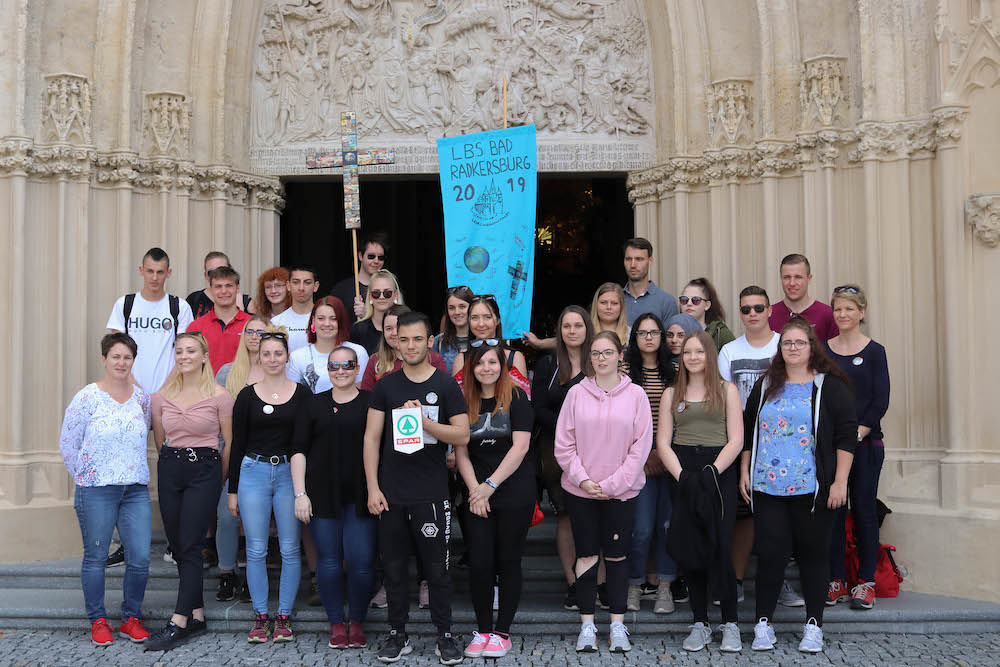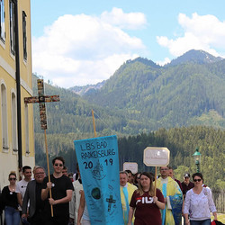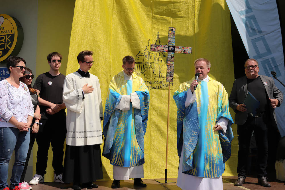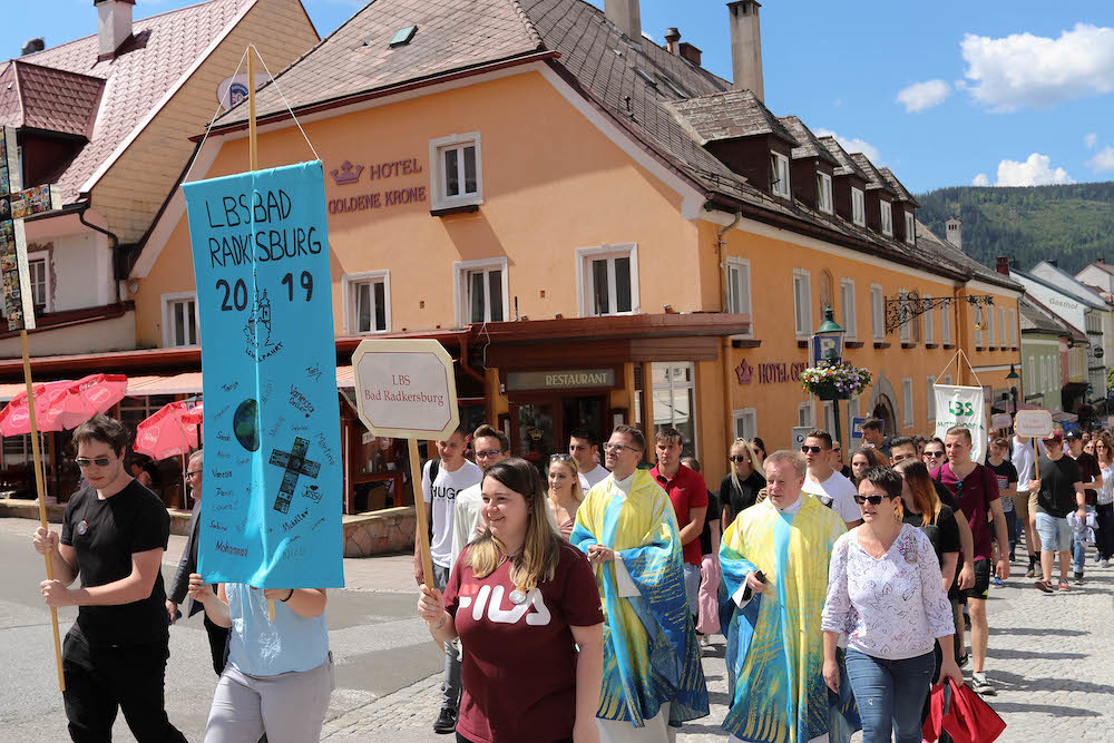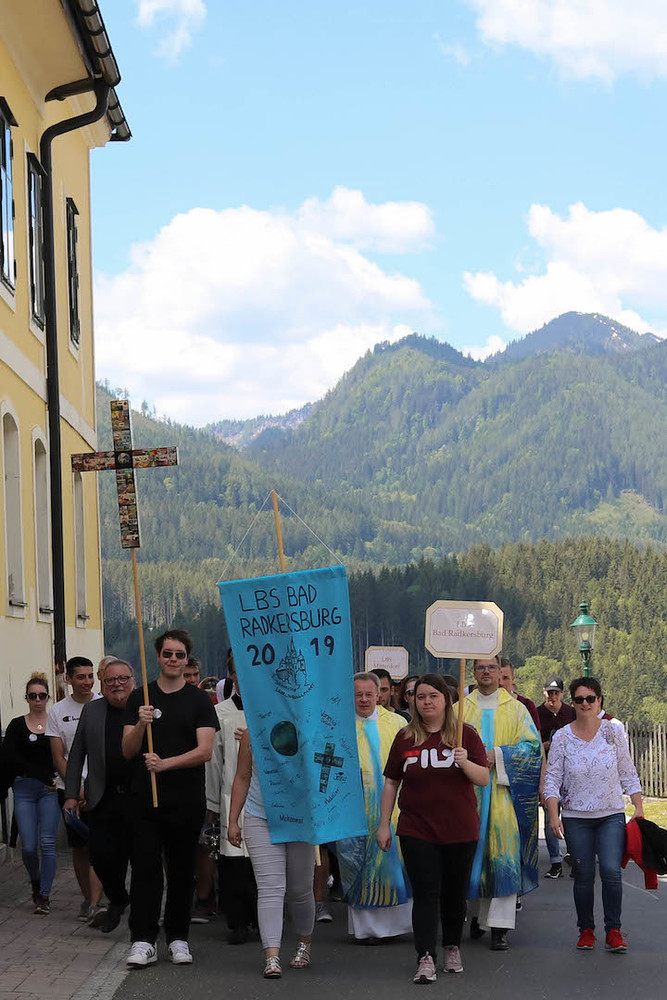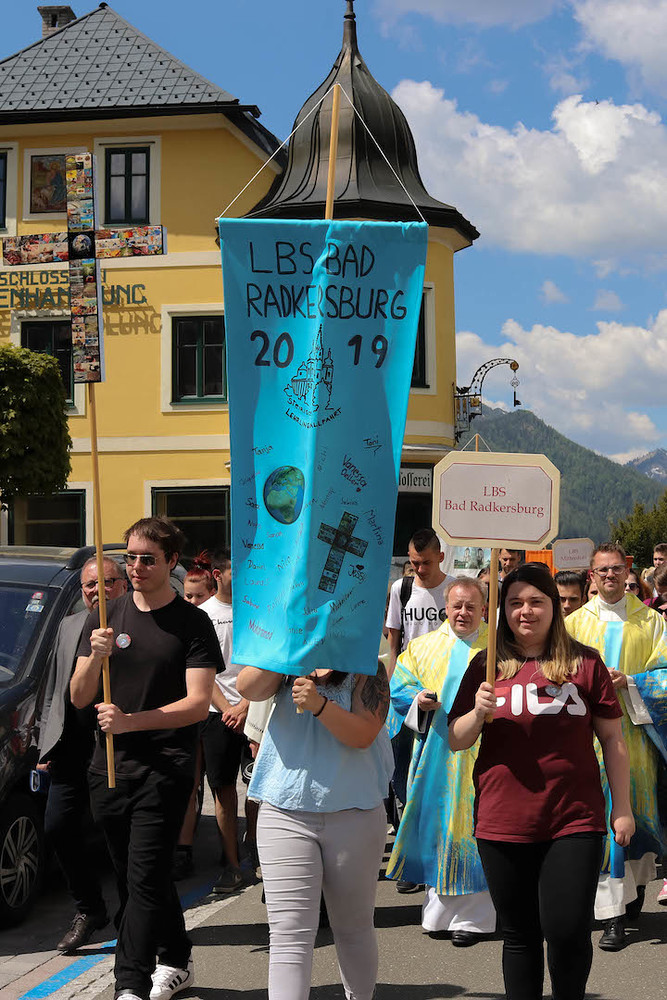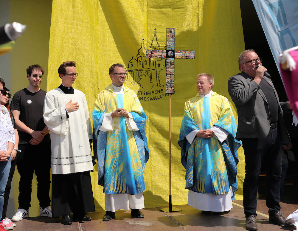 Jedes Jahr gestaltet eine andere der 16 Berufsschulen das Prozessionskreuz der Wallfahrt. Dieses Jahr kreierte es die Landesberufsschule Bad Radkersburg. Andreas Monschein beschrieb das Symbol des Kreuzes als „Zeichen des Lebens, Zeichen der Auferstehung und letztendlich Zeichen für ein Leben in Fülle.“ Des Weiteren appellierte er in Bezug auf das Thema Nachhaltigkeit an die SchülerInnen: „Ich weiß, dass ich es alleine nicht schaffen kann, die Welt zu retten, aber ich tue meinen Teil. Der Unterschied ist, mit welchem Blick und mit welcher Einstellung ich an die Sache herangehe. (..) Wir selbst sind Werkzeug für die Veränderungen und wir müssen alle anfangen, unseren Teil zu tun.“ In einer weiteren Geschichte verdeutlichte er, wie die Einstellung zur Tätigkeit die Arbeit formen kann. Er verglich drei Steinmetze bei deren Arbeit; wenn man den einen fragte was er da mache meinte dieser nur „Ich behaue Steine.“. Der Zweite erklärte: „Ich baue einen Fensterrahmen.“ und der letzte sprach: „Ich baue eine Kathedrale.“ Außerdem, „Es geht auch darum, im Leben weiter schauen zu lernen und das große Ganze zu begreifen.“, so Monschein. „Du baust mit an dieser Welt, und du kannst sie auch zerstören. (...) Fang einfach an, tu deinen Teil, was du kannst, auf deine Weise. Vielleicht geschieht ein Wunder, und die Welt beginnt sich zu verwandeln.“