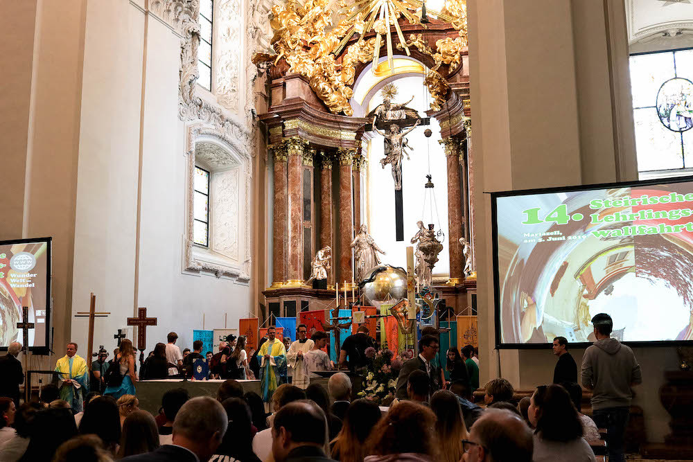 Die Lehrlingswallfahrt nach Mariazell, an der 700 Lehrlinge der steirischen Berufsschulen teilnahmen, fand dieses Jahr unter dem Motto „Wunder Welt im Wandel“ zum 14. Mal statt. In seiner Predigt setzte sich Pfarrer Andreas Monschein, Pfarre Kindberg, mit dem Thema der Wallfahrt auseinander: „Was hält unsere Welt zusammen? Was können wir für sie tun? Wir alle haben Anteil an dieser großen Welt, die Gott uns geschenkt hat.“, so Monschein. Es sei unsere Aufgabe, „unser Herz vorzubereiten auf Gott selbst.“