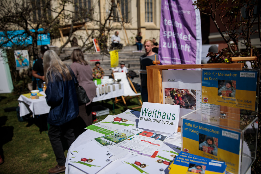 Bei den "Fastenspeisen aus aller Welt" stand eine uralte Tradition in ihrer Vielfalt im Mittelpunkt. Neben der traditionellen katholischen Fastensuppe stellten verschiedenste Glaubensgemeinschaften ihre Fastenspeisen vor. Doch nicht nur auf kulinarischem Wege durch Fleischverzicht lässt sich die Fastenzeit begehen, sondern etwa auch durch den Verzicht auf das Auto. Eine Radwaschstation, die das Rad wieder auf Hochglanz bringt, stand dafür bereit! Untermalt wurde das Fest durch Live-Musik von "Streetman" Christoph Kotter.