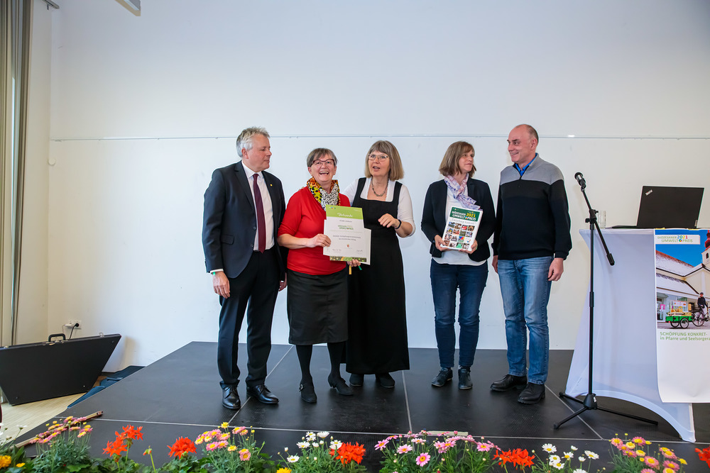 Der Diözesane Umweltpreis wurde heuer an schöpfungsfreundliche Pfarren und Seelsorgeräume vergeben. Heuer gab es kein singuläres Thema, sondern es wurde gleichsam auf den „Alltag“ in den Pfarren geschaut: wie wird gefeiert, gereinigt, geheizt, beleuchtet, eingekauft? Wie werden Grünflächen gestaltet, das Jungscharlager organisiert, die Sitzungsteilnehmer:innen verpflegt? Woher kommen die Blumen für den Kirchenschmuck, gibt es Bemühungen um Bewusstseinsbildung in der Pfarrbevölkerung und welche Aktivitäten setzt der Seelsorgeraum?