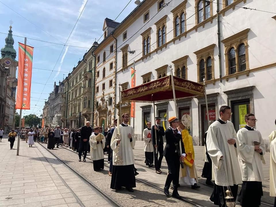 Andacht von Bischof Wilhelm Krautwaschl bei der Fronleichnamsfeier in Graz