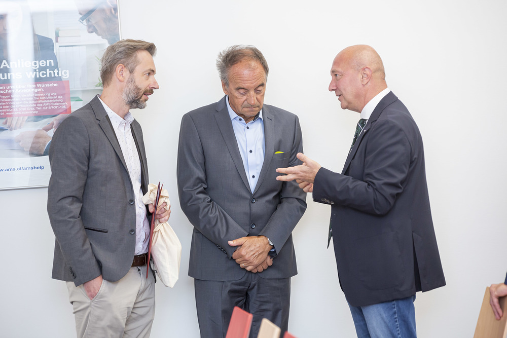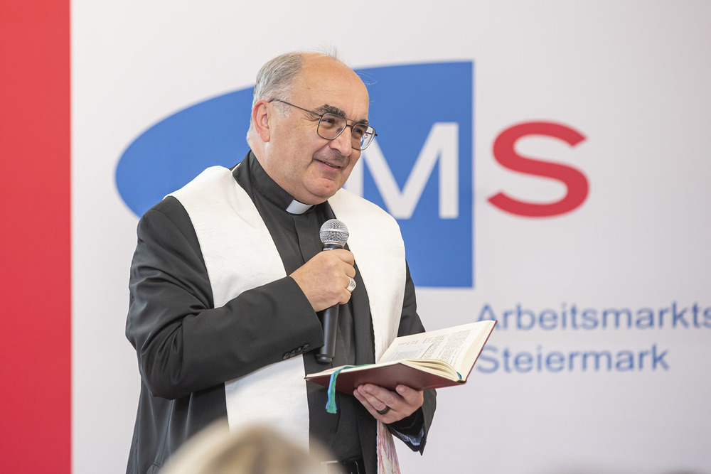 Am 2. September 2022 segnete Bischof Wilhelm Krautwaschl das neue Gebäude – und auch die wichtige Arbeit, die im Haus des Arbeitsmarktservice Graz West und Umgebung in der Grazer Zollgasse geleistet wird. Bischof Krautwaschl konnte auch auf zahlreiche Verantwortliche, wie Arbeitsminister Martin Kocher, AMS-Österreich Vorstand Herbert Buchinger, Bürgermeisterin Elke Kahr oder Landesgeschäftsführer Karl-Heinz Snobe, treffen. Begleitet wurde er von Peter Hochegger und Bernhard Schwarzenegger vom diözesanen Fonds für Arbeit und Bildung.