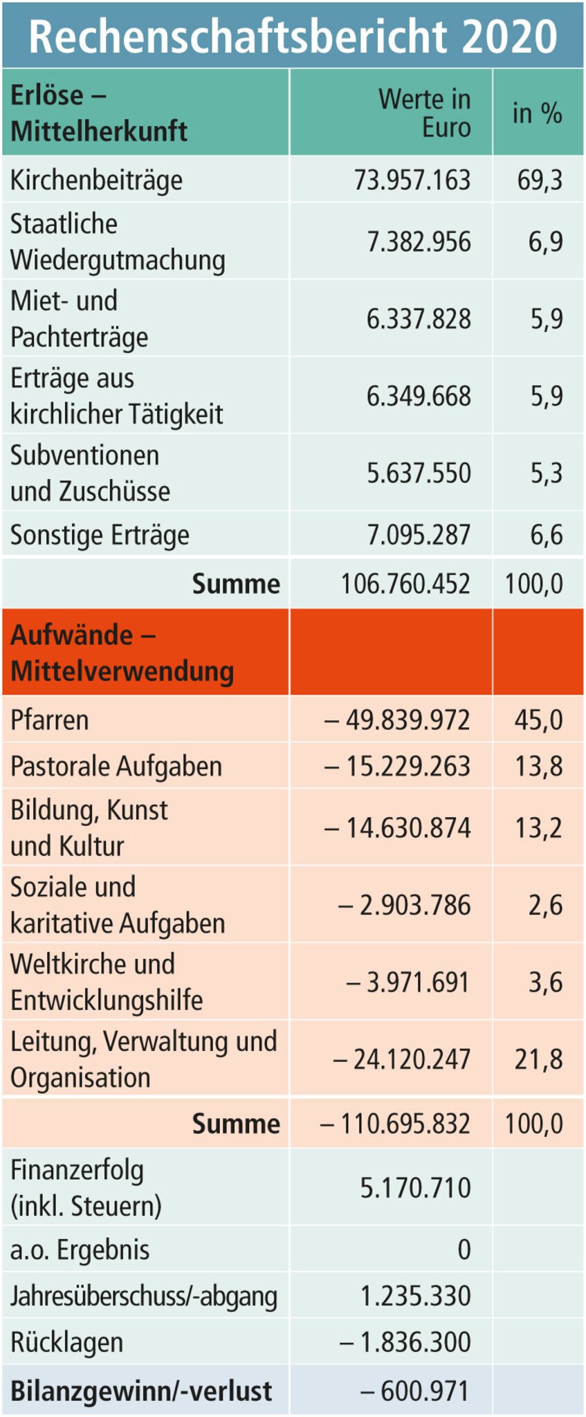 Das Jahr 2020 war auch für die katholische Kirche Steiermark in wirtschaftlicher Hinsicht ein Ausnahmejahr. Lockdowns, Homeoffice, Einschränkung der Gottesdienste, Begräbnisse und Hochzeiten, Ausfall der Jungscharlager und Bildungsveranstaltungen usw. gingen nicht spurlos vorüber. Zusätzlich führte die gesellschaftliche Breitenwirkung der Pandemie und die damit verbundene allgemeine Verunsicherung über Gesundheit und Arbeitsplätze zu erhöhten Wertberichtigungen bei den Kirchenbeiträgen. Dank staatlicher Unterstützung durch den sogenannten NPO-Fonds (Unterstützungsfonds für Non-Profit-Organisationen) konnte das Gesamtergebnis auf minus 0,6 Millionen Euro reduziert werden.