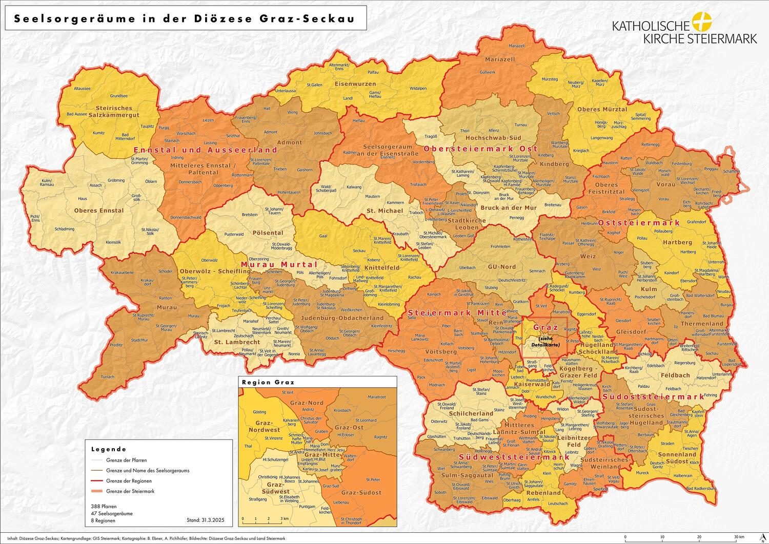 Seit 2020 wird Kirche vor Ort in der Steiermark in Seelsorgeräumen organisiert. Der Seelsorgeraum wird als Netzwerk aus Pfarren und anderen kirchlichen Erfahrungsräumen und Berührungspunkten verstanden.