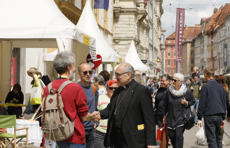 Kunstperformance, Glücksrad, Modenschau, HupfKirche, hochkarätige Diskussionsrunden, interkultureller Dialog und multikulturelle Konzerte – das alles und noch viel mehr wurde geboten. 8 Bühnen, 80 Veranstaltungen und 20 Stationen in der Kirchenmeile in der Grazer Herrengasse zeigten die katholische Kirche in der Steiermark in ihrer ganzen Buntheit und Vielfalt. Über 10.000 interessierte Menschen machten sich ein Bild davon, wohin sich die steirische katholische Kirche in den letzten 800 Jahren entwickelt hat und bekamen oft überraschende und ungewöhnliche Einblicke.