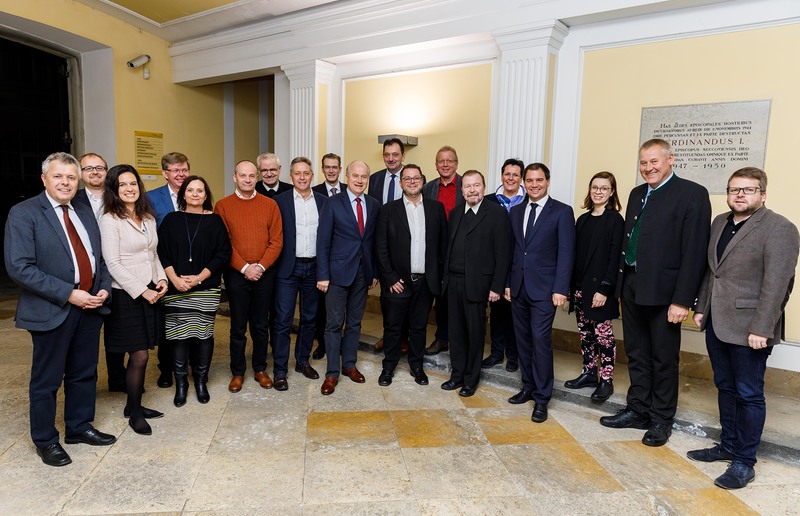 Katholische Kirche Steiermark: Generalvikar Erich Linhardt, Bischofsvikar Heinrich Schnuderl, Caritasdirektor Herbert Beiglböck, KA-Präsidentin Andrea Ederer, KA-Generalsekretärin Anna Hollwöger, Pastoralamtsleiter Erich Hohl, Leiter „Region und Engagement“ der Caritas Georg Eichberger, Leitungs-Stv. Wirtschaftsdirektion Ruth Madl, Generalsekretär Weg 2018 Thomas Bäckenberger