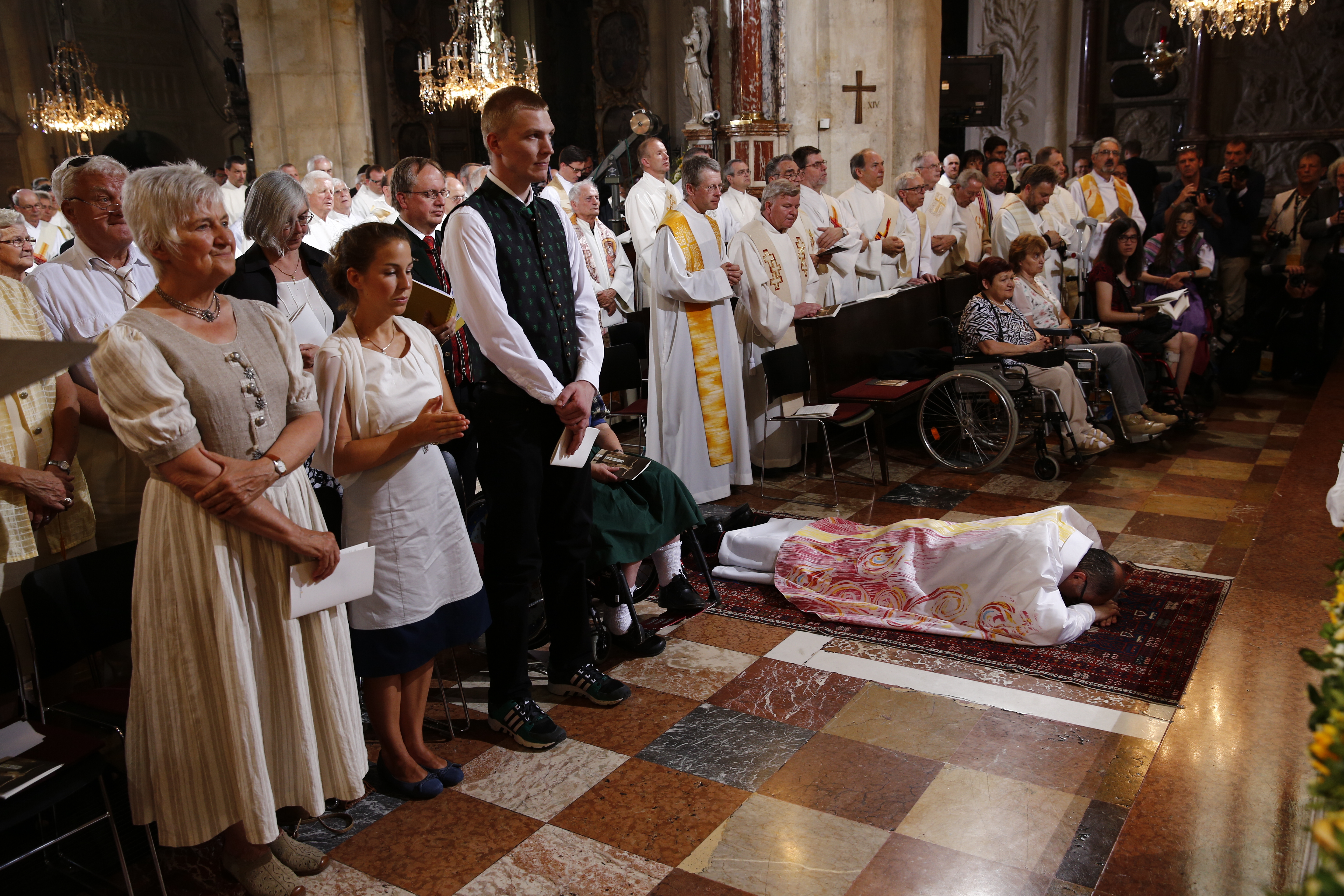 Bischof Krautwaschl liegt während der Allerheiligenlitanei am Boden des Doms.