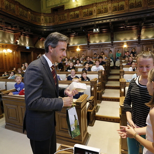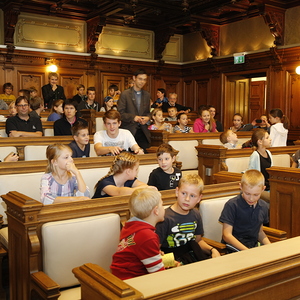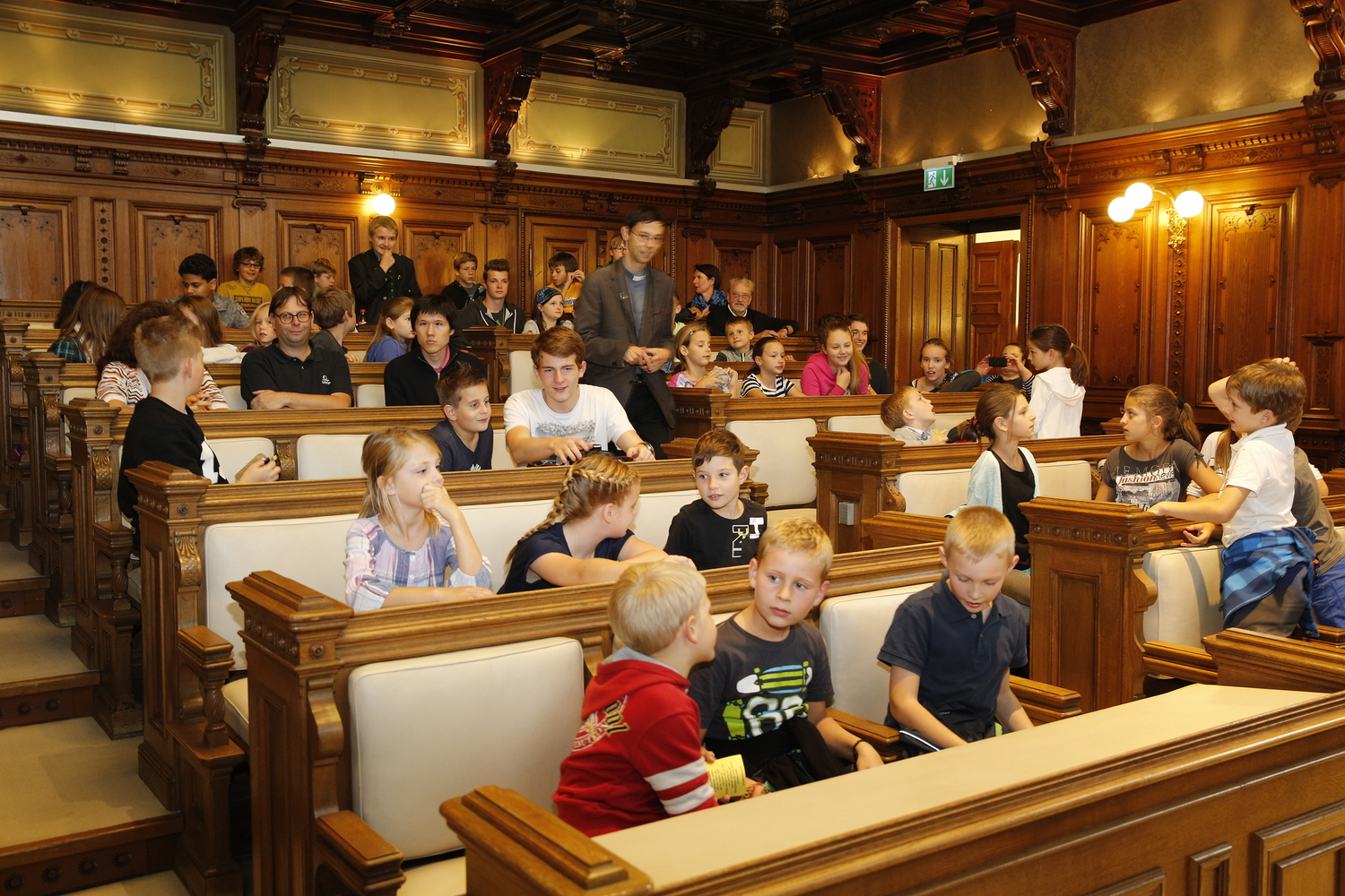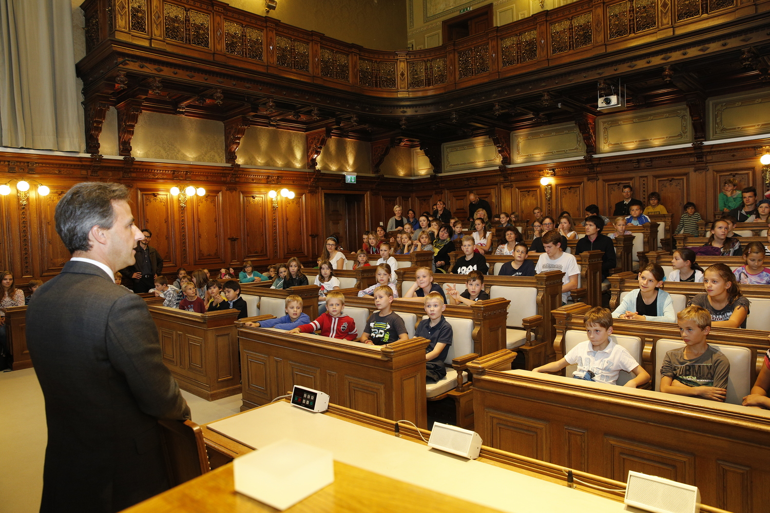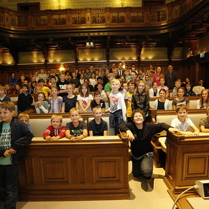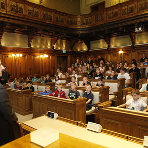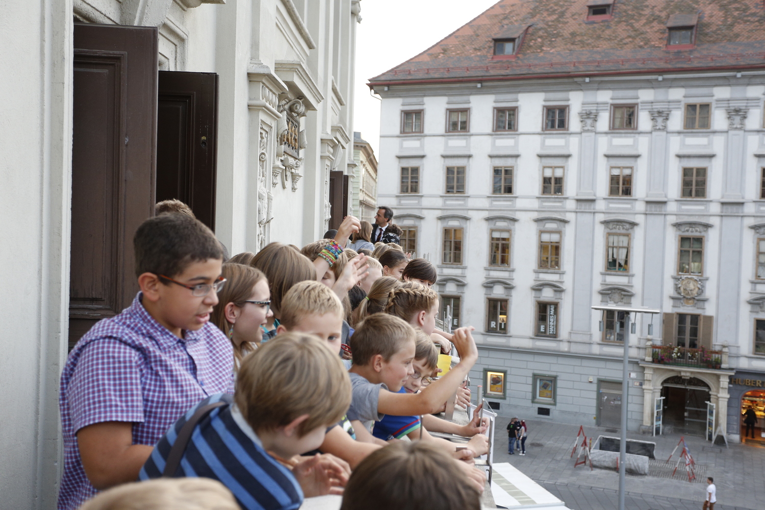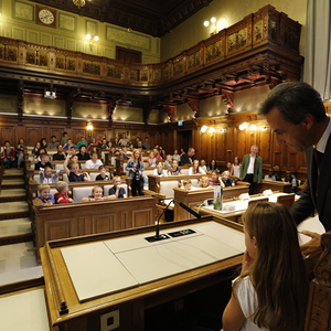 Bereits zum vierten Mal empfängt Bürgermeister Nagl die Grazer MinistrantInnenschar im Gemeinderatssitzungssaal. „Normalerweise dürfen da nur Gemeinderäte sitzen, aber heute seid ihr VIPs und dürft diese Plätze einnehmen!“, begrüßt er die muntere Schar, „heute seid ihr very important persons, also ganz wichtige Personen.“