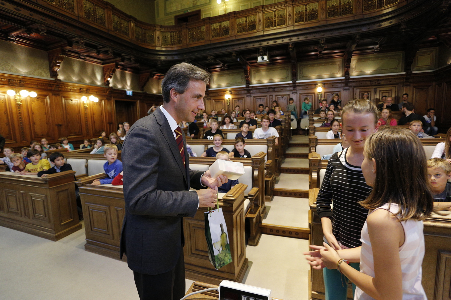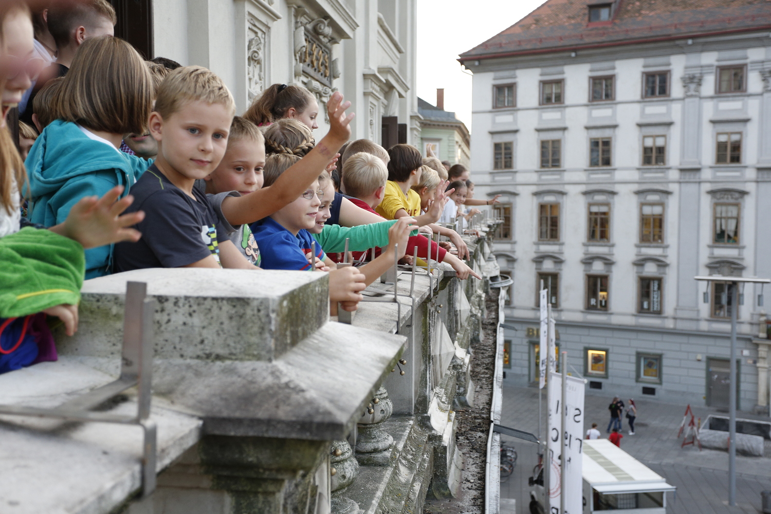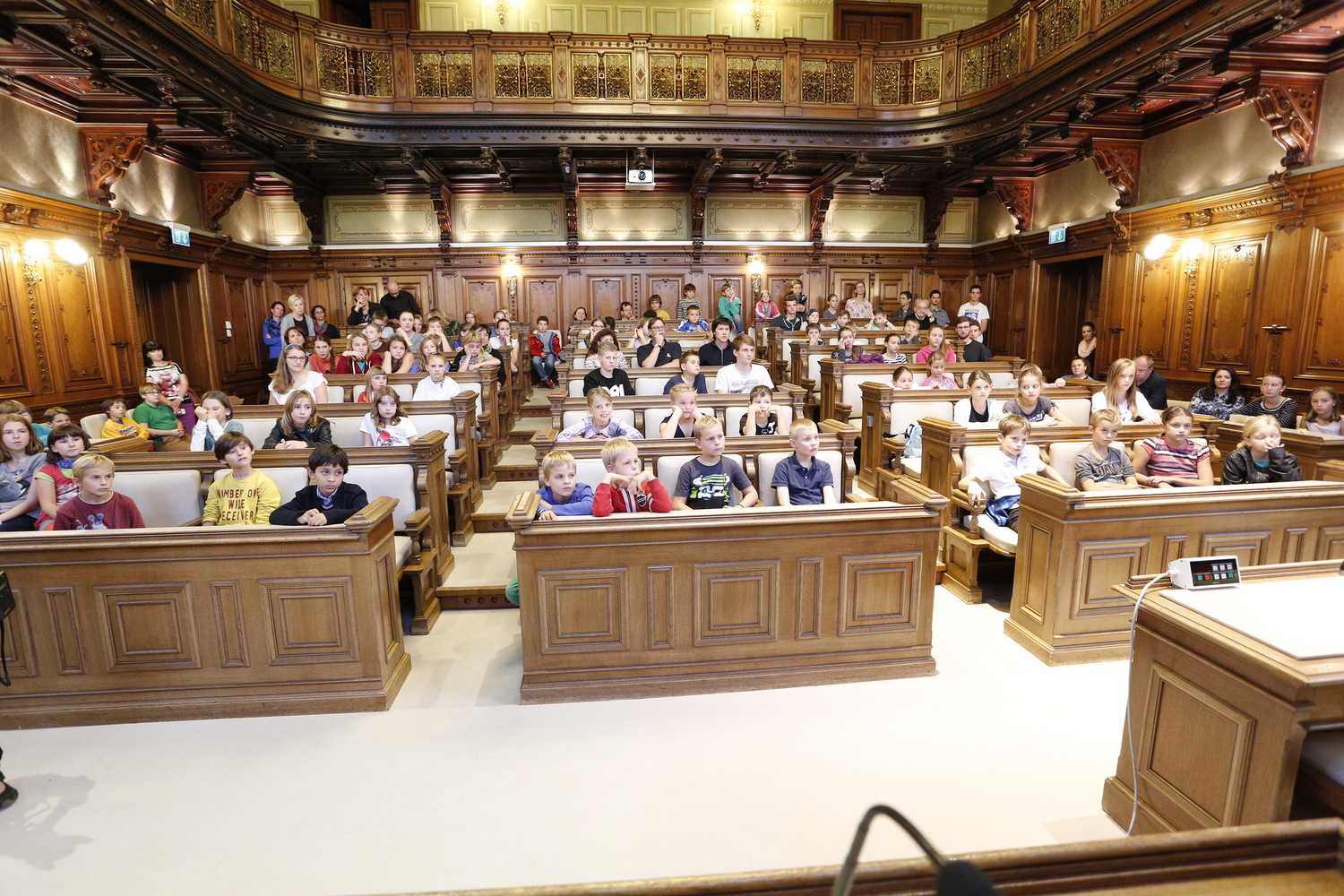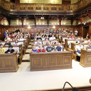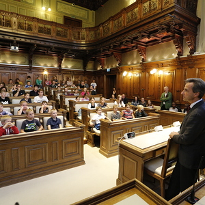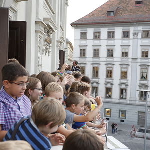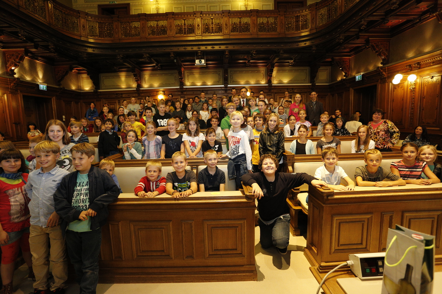 Bereits zum vierten Mal empfängt Bürgermeister Nagl die Grazer MinistrantInnenschar im Gemeinderatssitzungssaal. „Normalerweise dürfen da nur Gemeinderäte sitzen, aber heute seid ihr VIPs und dürft diese Plätze einnehmen!“, begrüßt er die muntere Schar, „heute seid ihr very important persons, also ganz wichtige Personen.“