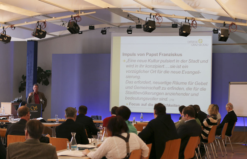 Karl Veitschegger vom bischöflichen Pastoralamt hielt ein sehr beachtetes Referat über das programmatische Schreiben von Papst Franziskus „Evangelii Gaudium“. In fünf Punkten skizzierte Veitschegger für den Diözesanrat das Schreiben. Die Freude des Christseins drängt zur Evangelisierung (erster Punkt). Diese verlange Mut zu Reformen, zweiter Punkt, denn es gäbe eine „Hierarchie der Wahrheiten“, die es möglich mache, Normen und Vorschriften auch zu revidieren. Eine Gefahr sei dafür, drittens, die Versuchung der in der Seelsorge Tätigen, die der Papst „spirituelle Weltlichkeit“ nennt. Dadurch würde der Glaube zu einem Museumsstück und mache sich nicht auf die Suche nach den Fernstehenden. Jeder Getaufte ist Subjekt der Evangelisierung, vierter Punkt. Das Zitat dazu aus „Evangelii Gaudium“: „Jeder Getaufte ist, unabhängig von seiner Funktion in der Kirche und dem Bildungsniveau seines Glaubens, aktiver Träger der Evangelisierung.“ (EG 120) Der fünfte Punkt lautet: "an der Seite der Armen für Liebe und Gerechtigkeit" stehen.