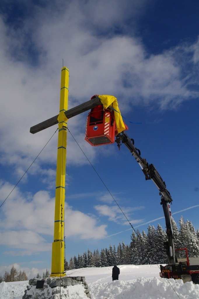 Aktion Glaube: Gleich für drei spektakuläre Verhüllungen, am Schöckl, am Gipfel des Stuhleck und der Mariensäule in Deutschlandsberg zeichnet sich die Katholische Männerbewegung verantwortlich. Sie will mit ihrem Engagement zeigen: da steckt was dahinter!