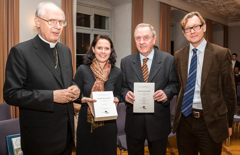 Univ.-Prof. Ableitinger würdigte in seinem Grußwort vor allem den Begründer der Reihe der „Grazer Nuntiaturberichte“, em. Univ.-Prof. Johann Rainer, ein gebürtiger Grazer der in Innsbruck akademisch lehrte, begann in den 1950er Jahren die Originaldokumente der Nuntiatur in Graz zu erforschen und editieren. Der erste Band erschien 1973. Band 2 und Band 3 wurden ebenfalls vom mittlerweile 90-jährigen Historiker bearbeitet. Rainer ist auch der Bearbeiter des vierten Bandes.