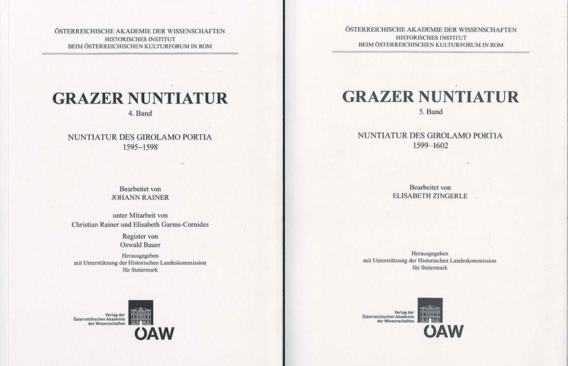 Am 31. Jänner um 18:30 Uhr präsentiert der Bischof von Graz-Seckau, die Historische Landeskommission für Steiermark, die Österreichische Akademie der Wissenschaften und das Institut für Geschichte der Karl-Franzens-Universität Graz im Barocksaal des Grazer Priesterseminars die Bände 4 und 5 der „Grazer Nuntiaturberichte“: Die Nuntiatur des Girolamo Portia (1595-1598, 1599-1602).