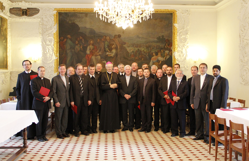 Diözesanbischof Dr. Egon Kapellari überreichte am Mittwoch, 27. 6., im feierlichen Ambiente des Refektoriums des Priesterseminars die Dekrete zur Pfarrerernennung. Auch Weihbischof Dr. Franz Lackner, Generalvikar Dr. Heinrich Schnuderl, Kanzler Dr. Michael Pregartbauer, Pastoralamtsleiter Mag. Johannes Freitag und Diözesanvisitator Mag. Franz Neumüller waren dabei.
