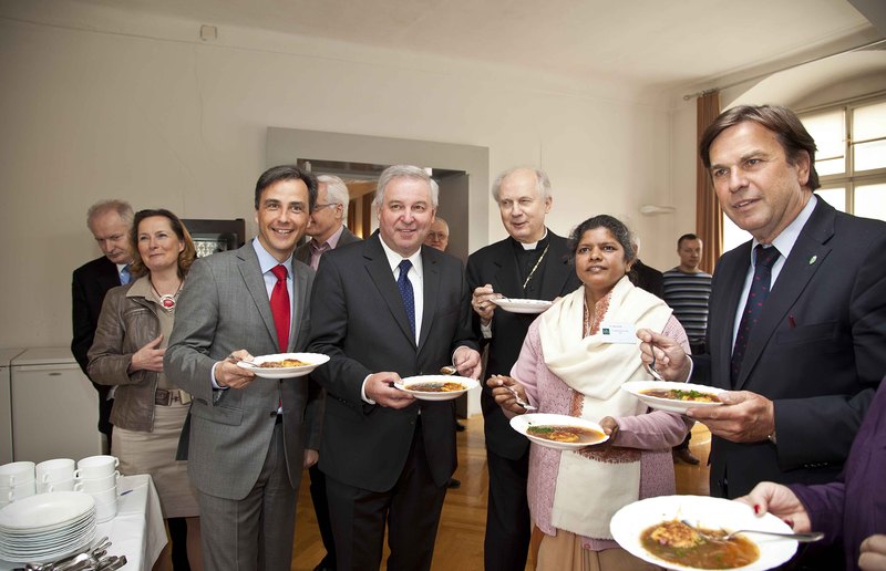 Landeshauptmann Franz Voves gratulierte den Verantwortlichen der Aktion Familienfasttag, die diese Aktion seit 1958 durchführen. Sein Sohn habe bereits zweimal Indien bereist und ihm persönlich von der Armut und der Schönheit dieses Landes berichtet. Das Land Steiermark werde diese wichtige Aktion mit 3000 Euro unterstützen. Damit können fünf Lehrer ein Jahr lang besoldet werden.