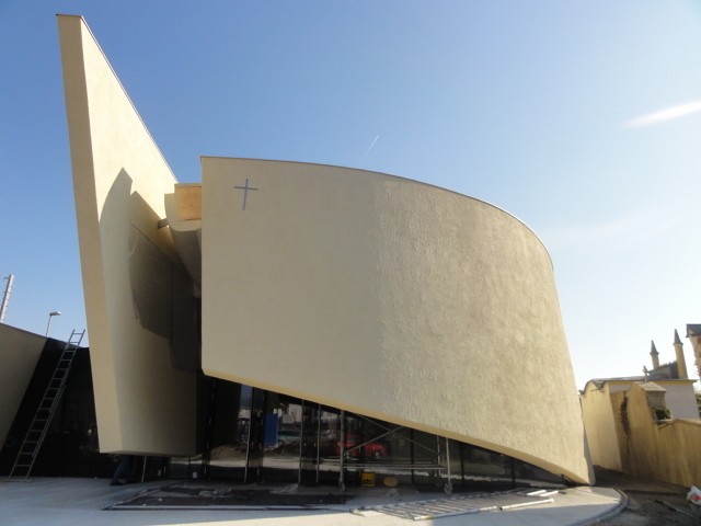 Der Bau von Architekt Gernot Ritter wurde im Februar des Jahres noch unter dem jetzigen Generalvikar und ehemaligen Stadtpfarrpropst Dr. Heinrich Schnuderl begonnen. Die architektonisch sehenswerte Einsegnungs- und Aufbahrungshalle in Form von behutsam aufnehmenden Händen aus zwei geschwungenen Stahlbetonschalen wird künftig auch kulturellen Veranstaltungen, wo man sich vor allem über die herrliche Akustik freuen darf, offen stehen. Der Bau hat neun Monate gedauert und wurde mit 1,3 Millionen Euro veranschlagt.