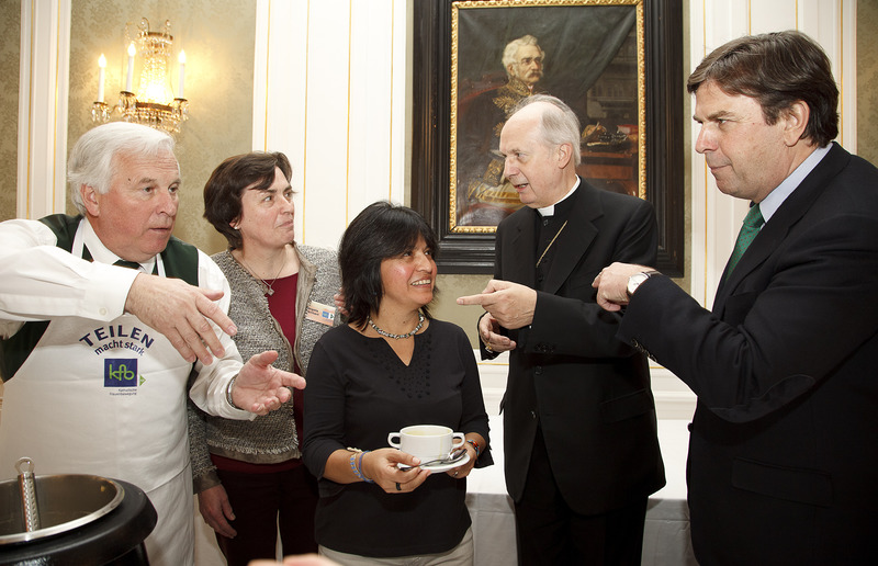 Landeshauptmann Mag. Franz Voves empfing Diözesanbischof Dr. Egon Kapellari gemeinsam mit der Katholischen Frauenbewegung der Diözese Graz-Seckau im Weißen Saal zum Benefizsuppenessen. Frau Sepúlveda sprach über die Situation der Frauen in Kolumbien und die Partnerorganisation Vamos Mujer. In einer bürgerkriegähnlichen Situation in Kolumbien setzt sich "Vamos Mujer" für einen Friedensdialog, wie für die Rechte der Frauen ein. Landeshauptmann Voves sicherte im veranschlagten Doppelbudget die Unterstützung des Landes ohne Kürzungen zu. Diözesanbischof Kapellari bedankte sich für die das Engagement und verwies gleichzeitig auf die "gewaltige Summe der Anstrengungen", von den Sternsingern bis zum Welthaus der Diözese, die jährlich von der steirischen Kirche erbracht werden. Die Fastenzeit sei ein Hinweis auf dieses Engagement. Christlich verstanden, macht sich der Kreis um einen Selbst auf, um zu einer Ellipse, mit einem zweiten Brennpunkt - den Anderen - zu werden, so der Diözesanbischof.