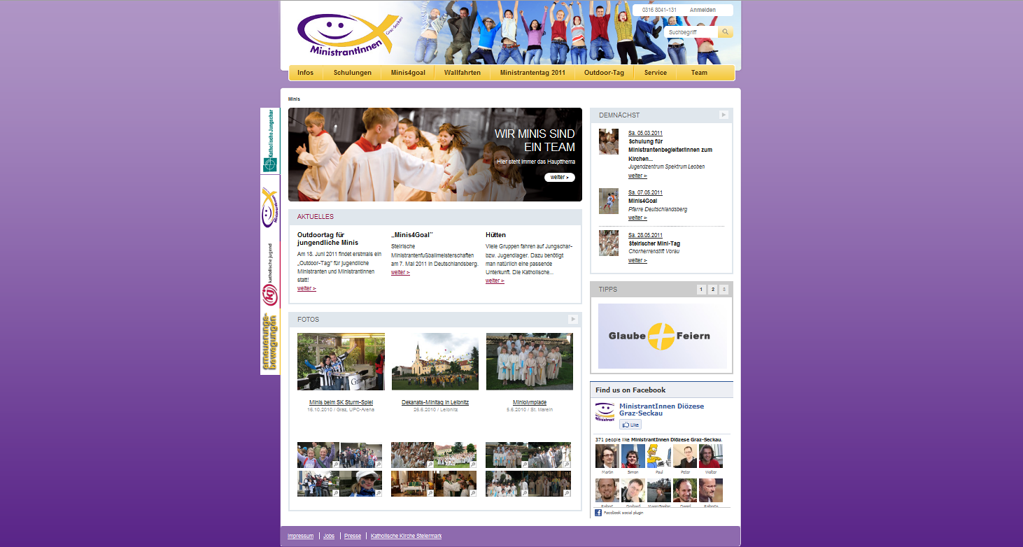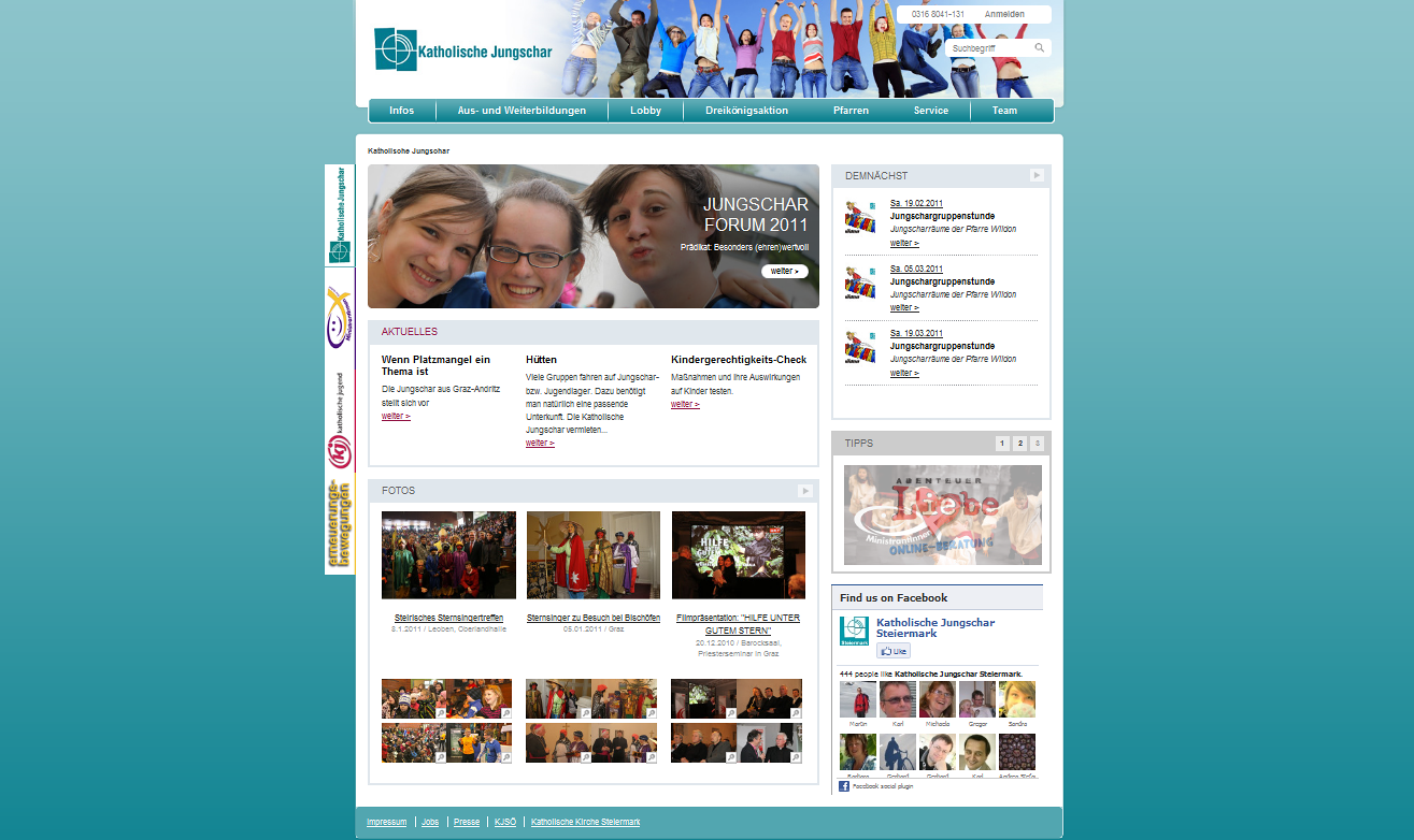 Das Sonntagsblatt schritt mutig voran, die Webseite der Katholischen Kirche Steiermark folgte kurz darauf mit der Umgestaltung, jetzt sind auch fünf Webseiten der Jungen Kirche, www.jungekirche.info, www.katholische-jugend-steiermark.at, www.jungschar.at/steiermark, minis.graz-seckau.at und www.juz-spektrum.at können ab sofort im neuen Kleid bewundert werden.