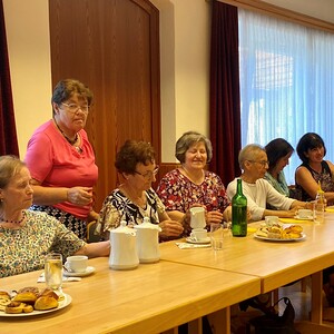 Maria Suntinger erfreute mit ihrem Orgelspiel und Gesang. Nach einem stärkenden Mittagessen ging es nach Feldbach, wo Pfarrer Kan. Mag. Friedrich Weingartmann die Geschichte der Feldbacher Kirche erläuterte bzw. den neu errichteten Dekalogweg erklärte. Ein gemütlicher Ausklang bei Kaffee und Kuchen, vorbereitet von Josefa Christandl und Elisabeth Grain, rundete den gelungenen Tag ab. Ein Dank an Alle, die zum Gelingen dieses Tages beigetragen haben.