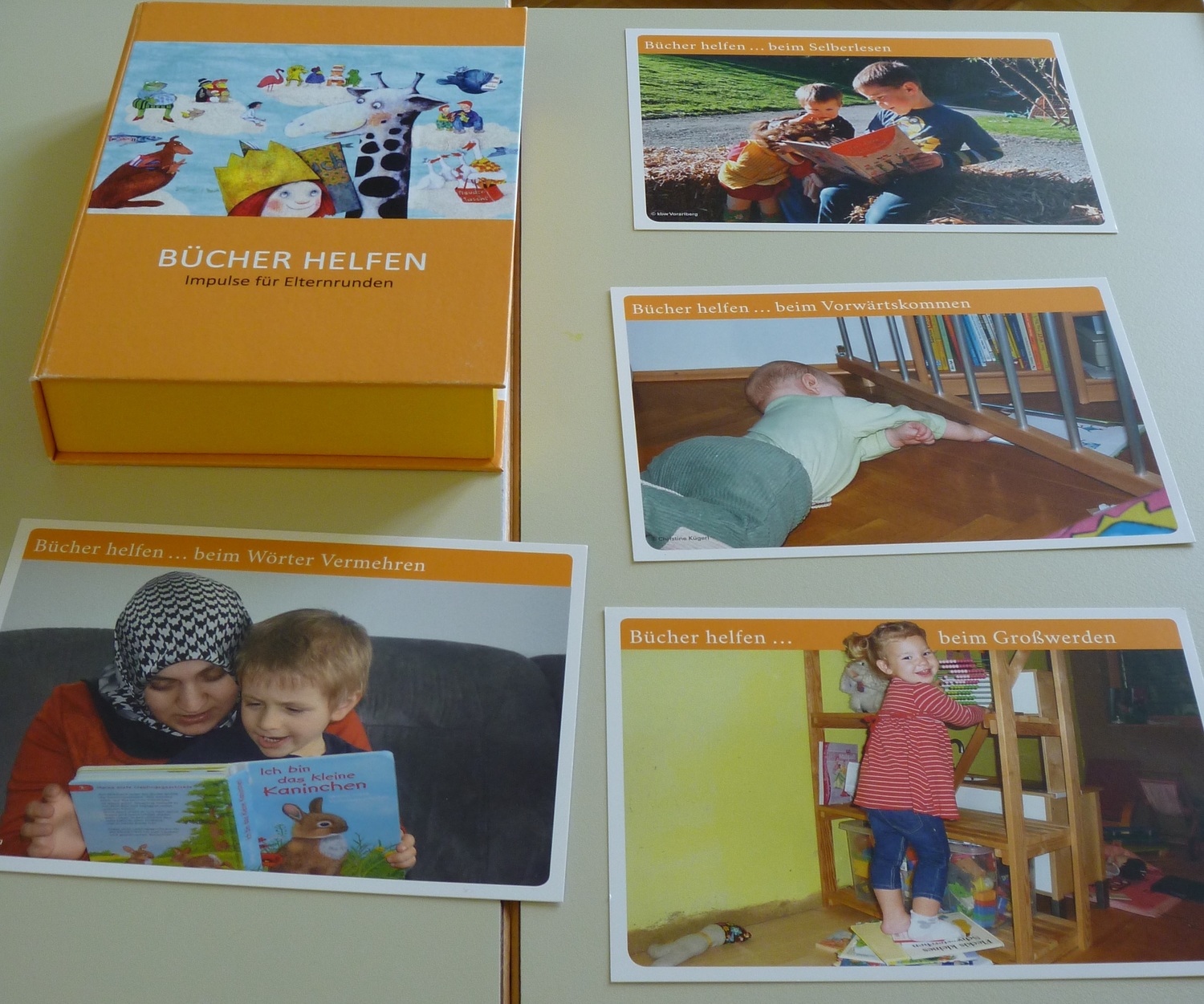 Der Austausch wird von Moderator/innen geleitet und erfolgt mithilfe von Gesprächs- und/oder Bildkarten. Die Themen gehen von "Grenzen setzen bis "Geschwisterstreit".